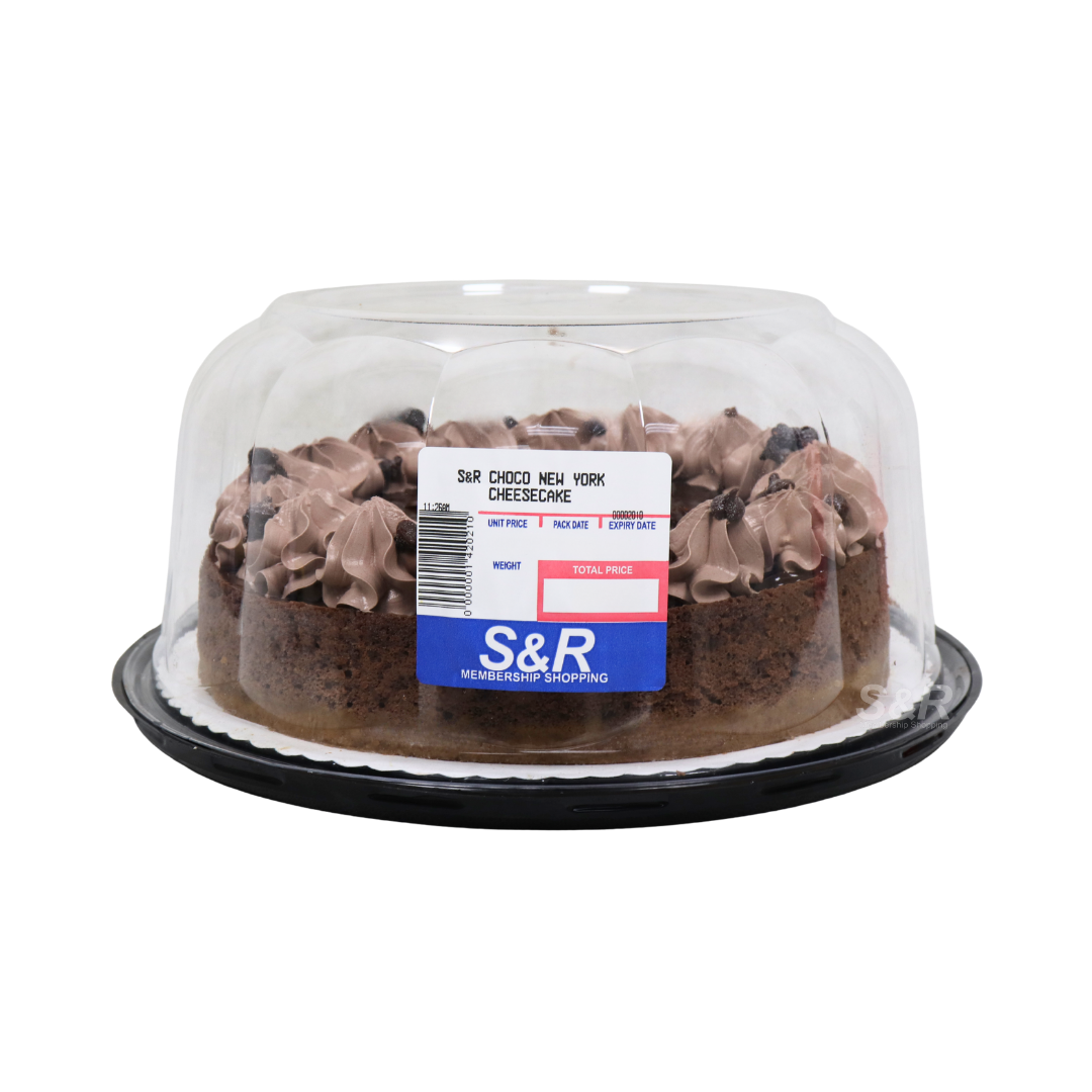 • S&R Choco New York Cheesecake features a rich, velvety cheesecake base with a decadent chocolate swirl or topping — delivering a luxurious dessert ideal for celebrations, family treats, or indulgent afternoons. Its creamy texture and balanced sweetness make it a crowd‑pleaser, while its classic cheesecake richness appeals to dessert lovers who enjoy creamy, decadent cakes. Good for sharing, gifting, or enjoying with coffee or tea, this cheesecake offers a reliable mix of flavor and quality.