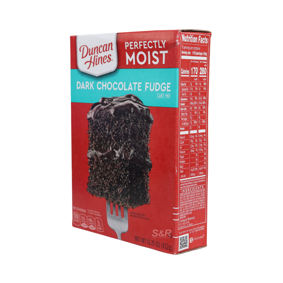 • Duncan Hines Perfectly Moist Dark Chocolate Fudge Cake Mix is designed to produce a rich, moist chocolate cake with deep cocoa flavor. Simple to prepare with minimal ingredients, it delivers consistent baking results. Ideal for birthdays, gatherings, or everyday desserts, this mix offers convenience without compromising taste. Trusted by home bakers, it is a reliable choice for indulgent homemade treats.