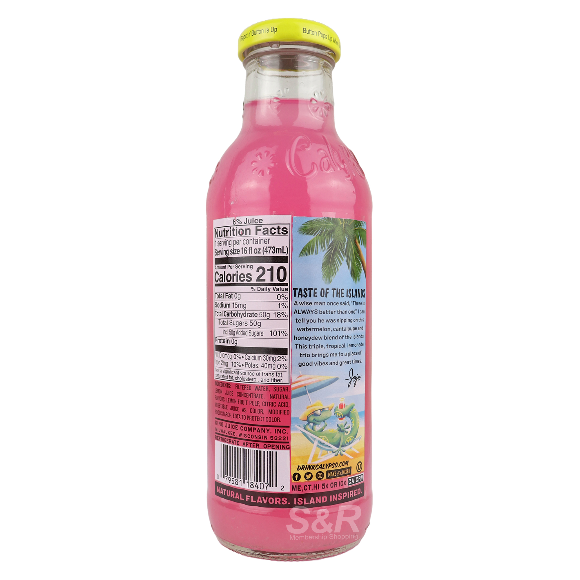 • Enjoy a refreshing blend of melons and lemonade with Calypso Triple Melon Lemonade, available in a 473mL bottle.