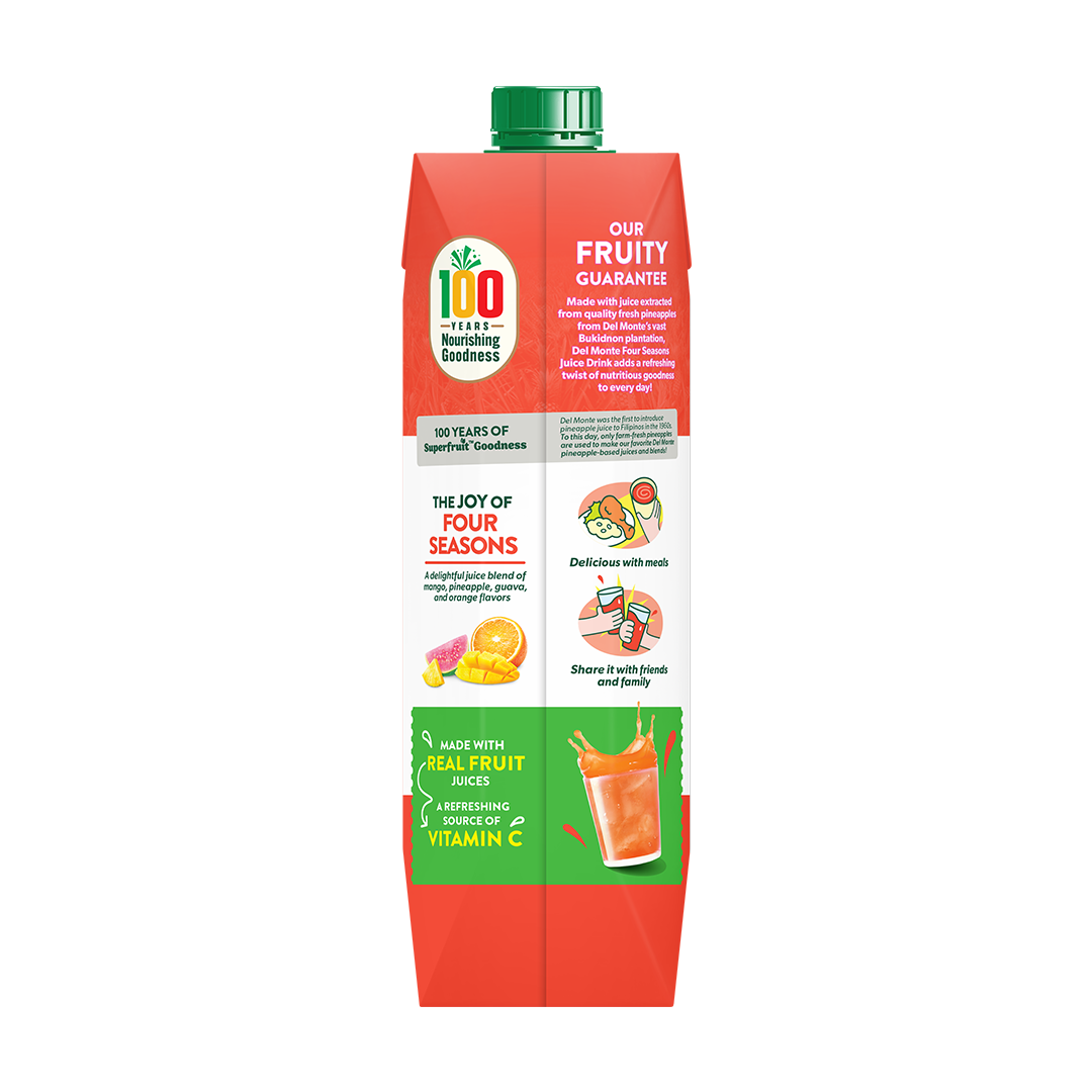 • Winter, spring, summer, or fall. All you got to do is call… none other then the best season that you could ever have. Del Monte Four Seasons Juice Drink is the best season one could ever have. It offers the earthy finish of autumn, the coolness of winter, the vibrance of spring, and the intensity of summer in one juice experience. No wonder people are getting so much excited when they have a glass of this super juice.