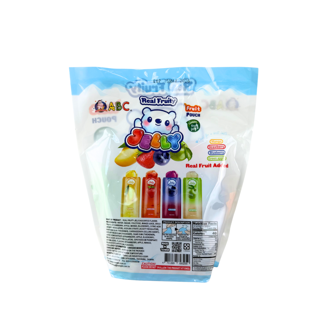 ABC Real Fruity Jelly Pouches are a fun, colorful snack loved by kids and adults alike. Each pouch contains chewy jelly with real fruit juice flavor, creating a balance of sweetness and refreshment. The set includes assorted flavors, making it perfect for parties, lunch boxes, or everyday treats.