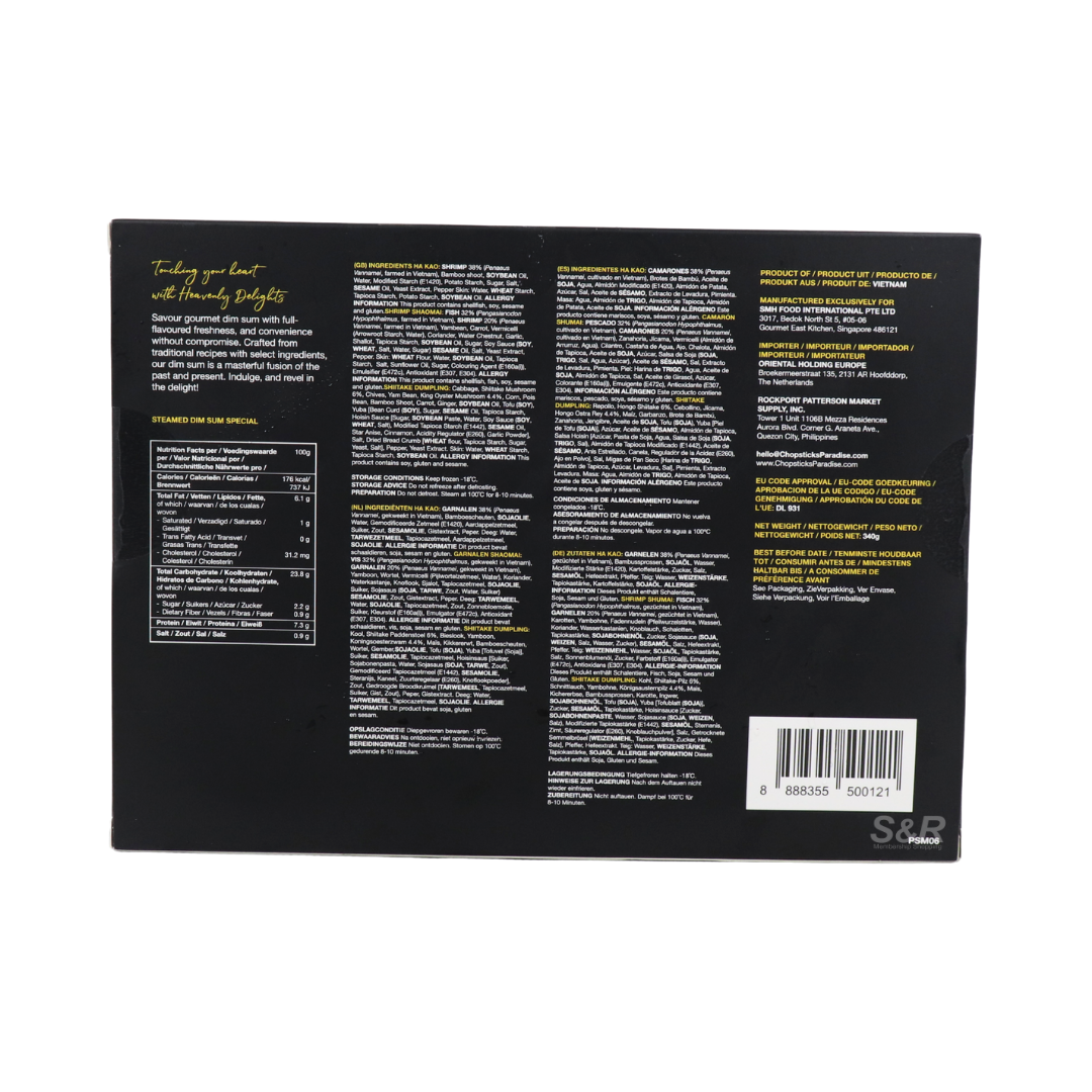 • Chopsticks Paradise Steamed Dim Sum Special offers a delicious assortment of authentic steamed dim sum, perfect for appetizers or main meals. Made with high-quality ingredients, this 340g pack provides a convenient and flavorful experience, bringing traditional taste to your table.