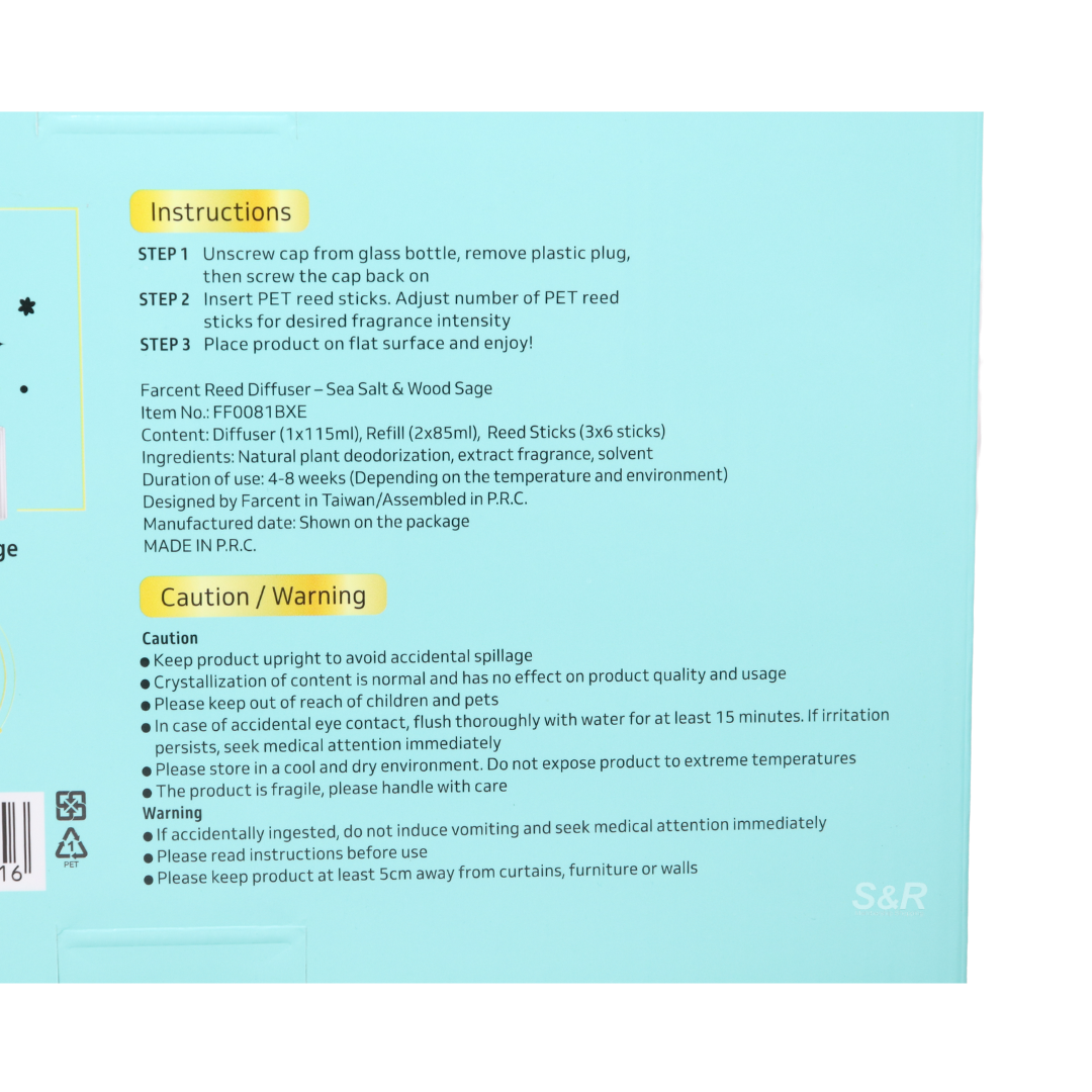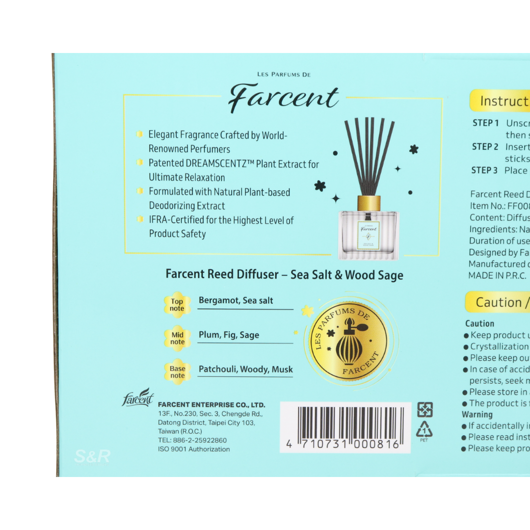 Farcent Sea Salt & Wood Sage Reed Diffuser Set is designed to deliver reliable quality and everyday performance. Crafted with attention to detail, this product meets modern household and lifestyle needs, offering convenience, durability, and excellent value. Whether used daily or for special occasions, it provides dependable results that customers can trust. Its thoughtful packaging and practical format make it suitable for both personal and family use. A smart addition to any home, combining functionality with brand credibility.