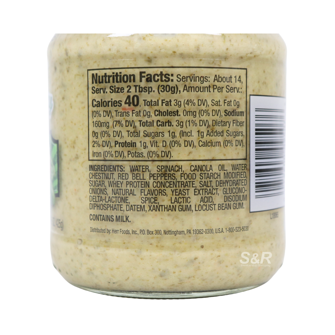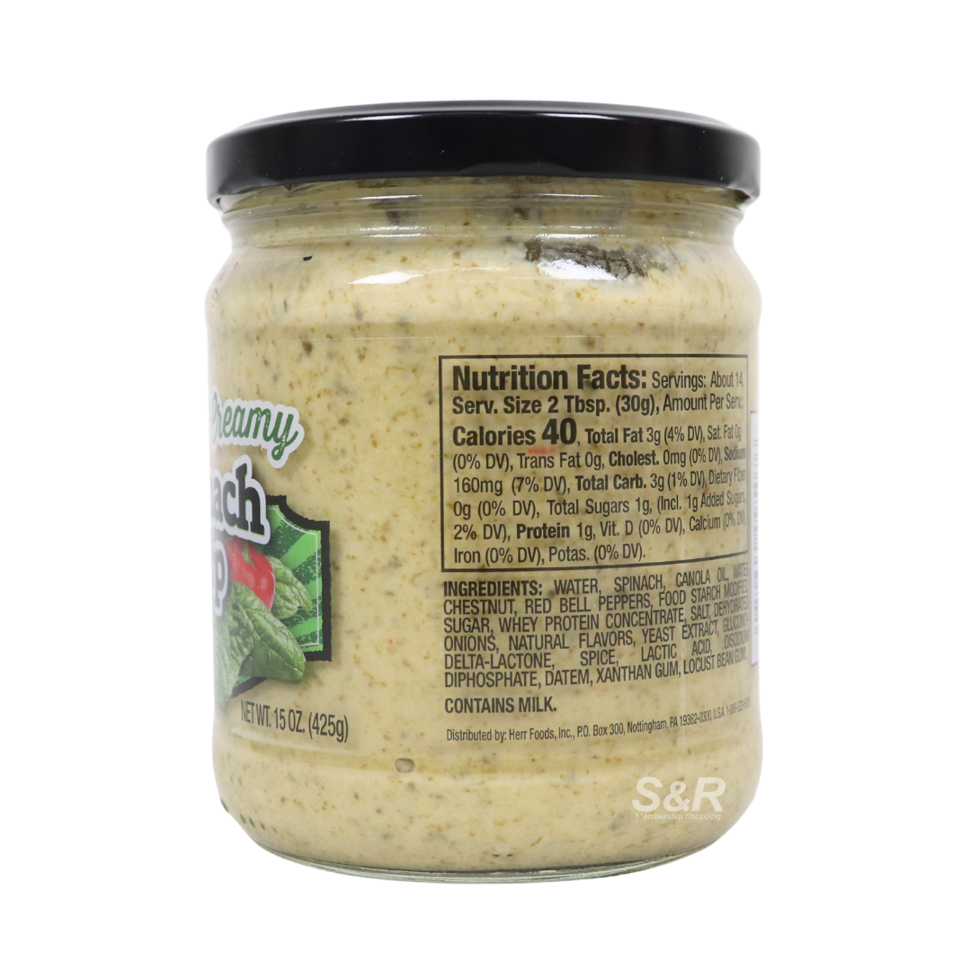 • Herr’s Creamy Spinach Dip is a rich and flavorful dip that combines smooth creamy texture with savory spinach taste. Perfect for serving with potato chips, tortilla chips, crackers, or fresh vegetable sticks, it makes a great addition to snack platters and gatherings. The balanced blend of creamy ingredients and spinach flavor creates a satisfying dip that complements a variety of snacks. Conveniently packaged and ready to serve, it saves preparation time while delivering delicious flavor. Whether enjoyed during parties, movie nights, or casual snacking, this dip provides a tasty and easy way to elevate your favorite snacks.