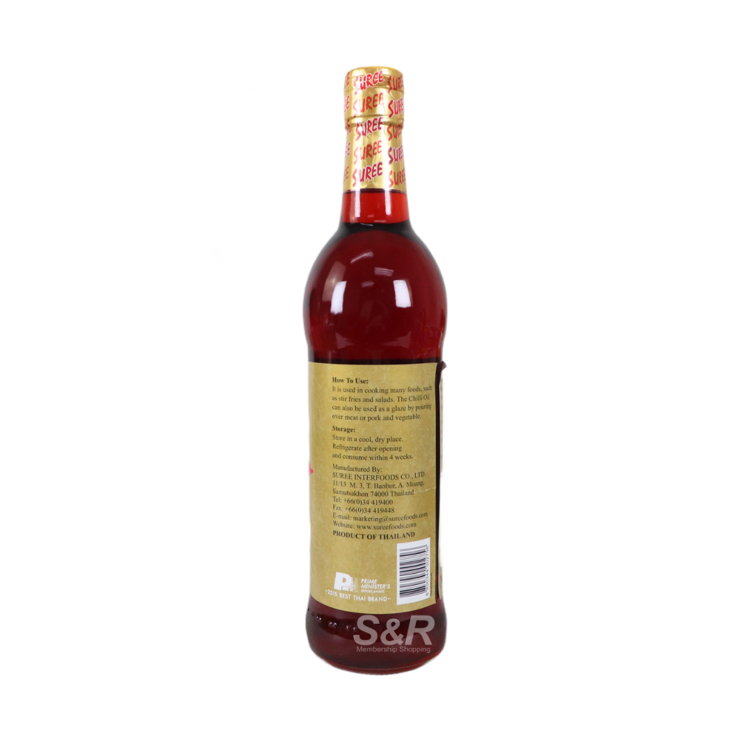 • Bring bold heat and aroma to your dishes with Suree Chili Oil. Infused with chili and spices, this flavorful oil enhances noodles, dumplings, and stir-fried meals with its rich and spicy kick. Perfect as a condiment or cooking ingredient for those who love extra heat.