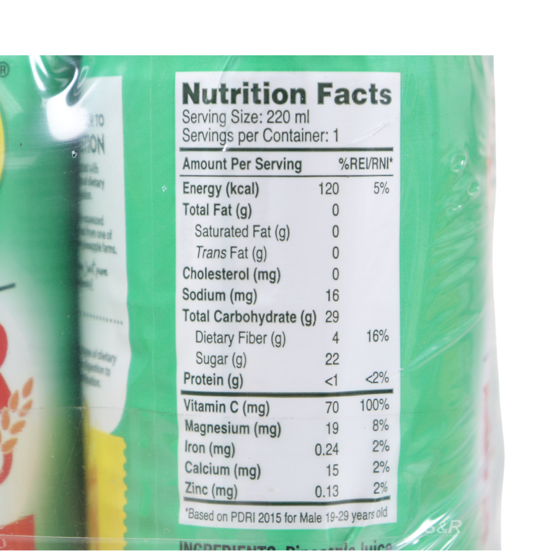 Del Monte Pineapple Juice Fiber (220mL x 6 cans)