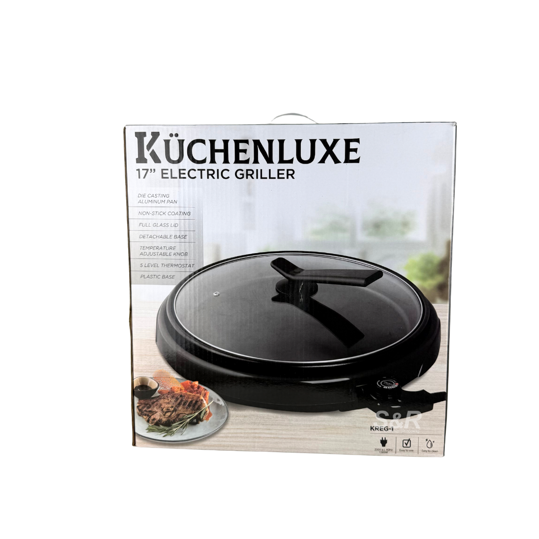 The Kuchenluxe 17-inch Electric Griller brings the joy of grilling indoors. With a spacious nonstick cooking surface, it allows you to prepare meats, vegetables, and seafood with ease. Adjustable heat settings let you control cooking precisely, while the drip tray ensures a healthier meal with less mess. Its compact design makes it ideal for kitchens of any size.