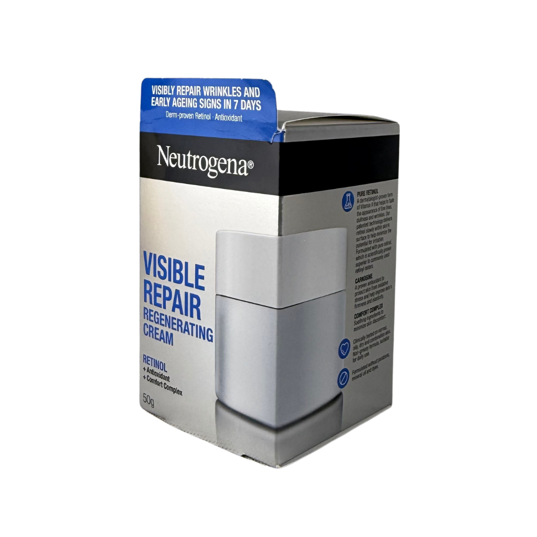 The Neutrogena Visible Repair Regenerating Cream helps reveal smoother, more youthful-looking skin. Powered by pro-retinol and other advanced ingredients, this cream visibly reduces fine lines and improves skin texture. It also enhances firmness and hydration while providing daily nourishment. Gentle enough for sensitive skin, it’s perfect for use under makeup or as part of a nighttime routine.