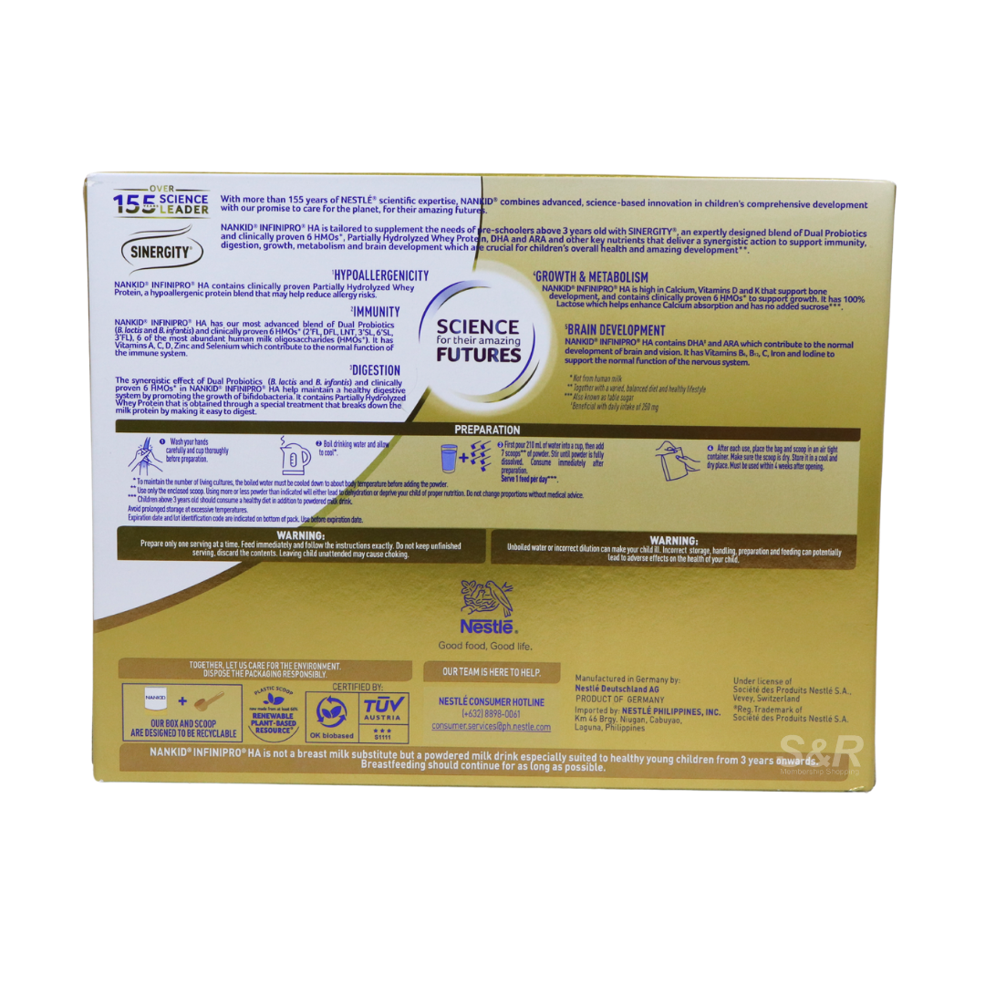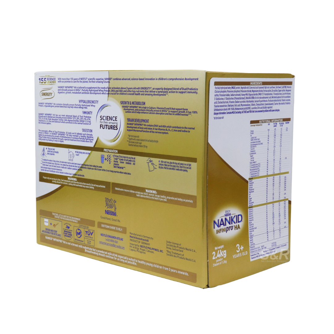 • NANkid InfiniPro HA 3+ Powder Milk supports growth and development of toddlers aged 3 years and above. It is enriched with vitamins, minerals, and probiotics to enhance immunity and digestive health. Hypoallergenic formulation ensures gentle nutrition for sensitive children.