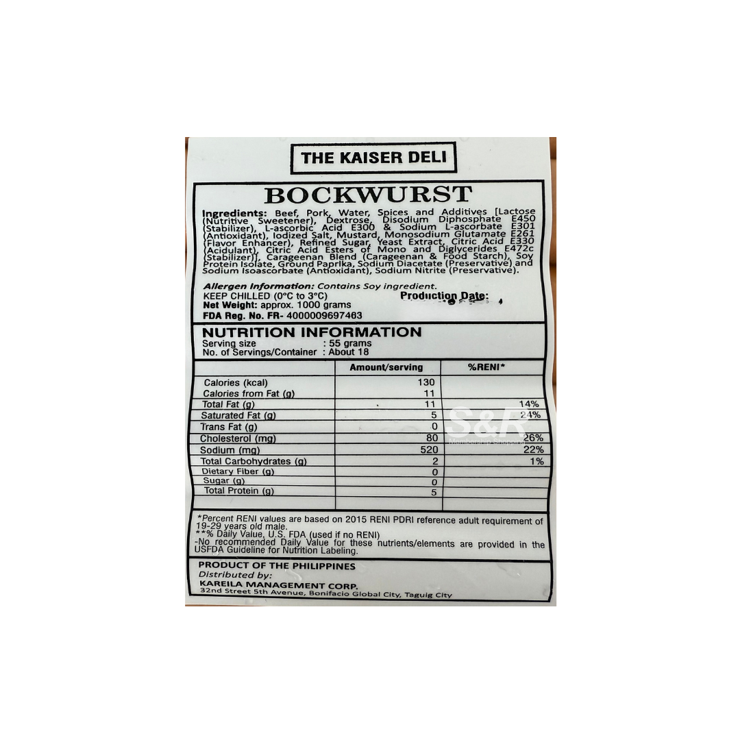 S&R Bockwurst delivers an authentic German sausage experience, with a mild flavor profile and juicy bite. Perfect for grilling or pan-frying, it pairs well with mustard, sauerkraut, or bread rolls. Excellent for barbecues, parties, or as part of a hearty meal.
