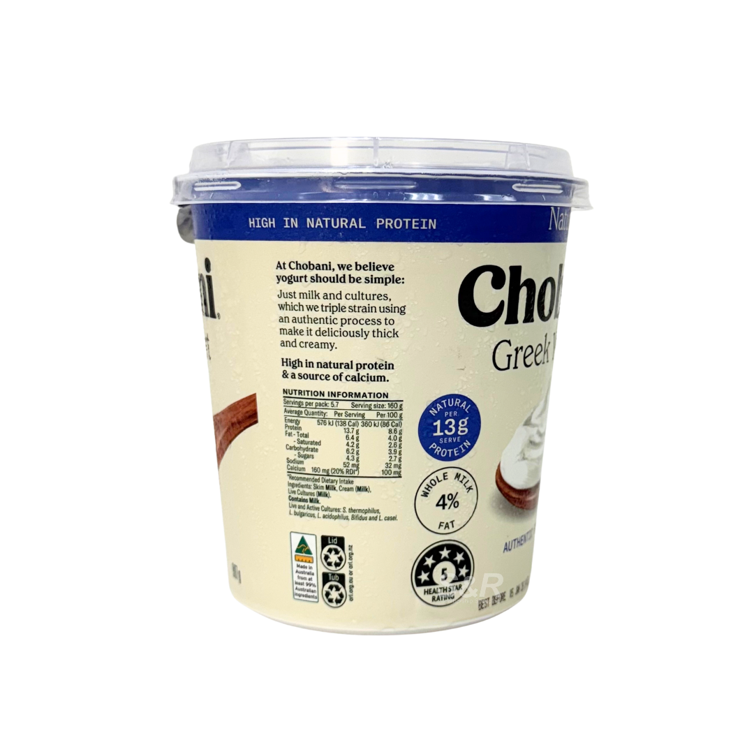 Chobani Natural Greek Yogurt is a well‑known, rich, thick yogurt made by a leading American dairy company. Its smooth texture and tangy, fresh flavor make it a favorite for breakfast bowls, smoothies, cooking, or baking. High in protein and naturally cultured, it offers a balanced dairy base that fits both healthy meals and indulgent treats.