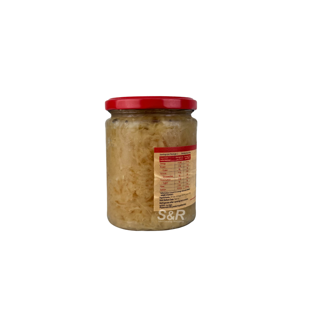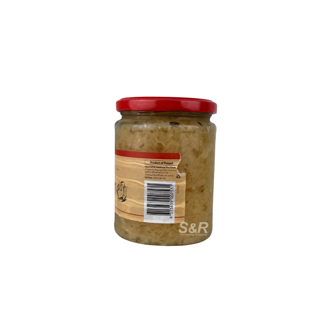 Sandhurst Polish Sauerkraut is crafted from authentic recipes, delivering tangy flavor and natural probiotic benefits. Perfect as a side dish, sandwich topping, or cooking ingredient, it brings traditional European taste to meals. Packed in a 500g container, it’s convenient for home use.