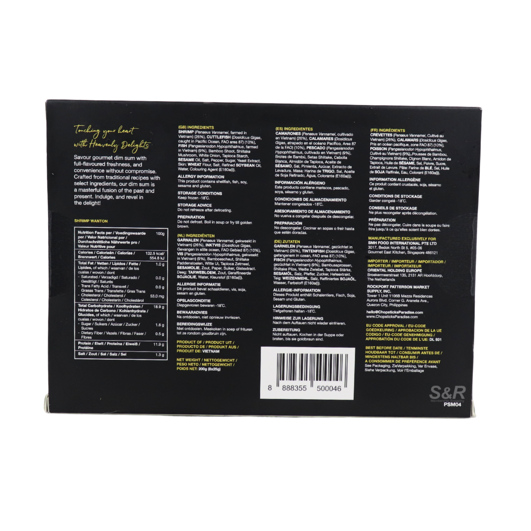Chopsticks Paradise Shrimp Wanton features juicy shrimp filling wrapped in delicate wonton dough, offering an authentic taste of traditional dim sum. This 200g pack is perfect for soups or appetizers, delivering a flavorful and satisfying experience in every bite.
