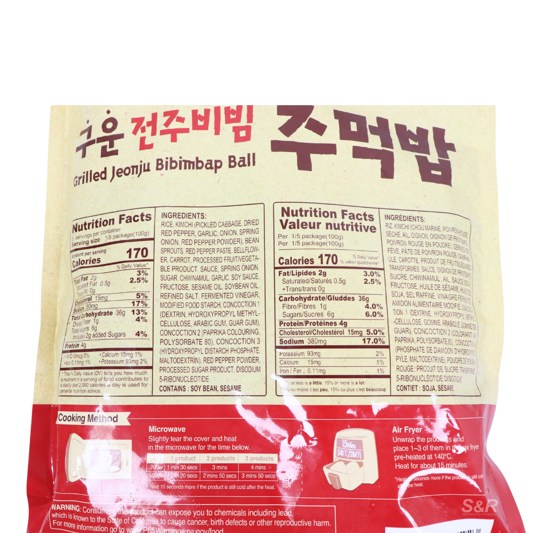 Inspired by Korea’s famous Jeonju bibimbap, this grilled rice ball combines seasoned rice, kimchi, vegetables, and gochujang for a rich and satisfying flavor. Designed for convenience, it heats quickly in the microwave or air fryer, making it ideal for quick meals or snacks.