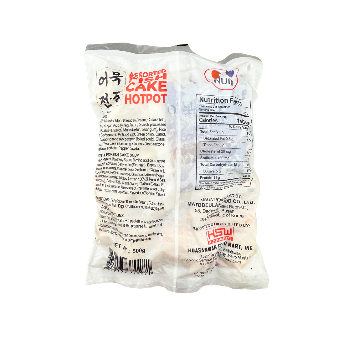 Nuri Assorted Fish Cake Hotpot offers a delicious combination of traditional Korean fish cakes in a variety of shapes and textures. Perfect for making hotpot, soup, or stir-fried dishes, these fish cakes absorb flavors beautifully while adding a satisfying chewiness. Enjoy a comforting and hearty Korean dining experience at home with this convenient frozen pack.
