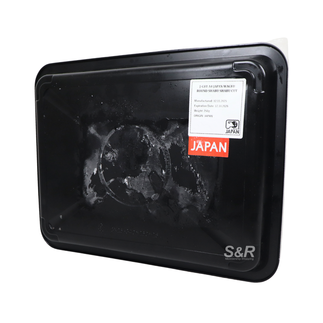 • S&R A4 Japan Wagyu Round Shabu-Shabu Cut offers premium Japanese Wagyu beef specially sliced for hot pot dishes. With its signature marbling and tender texture, this A4-grade Wagyu provides rich flavor while remaining delicate and easy to cook. The thin slices cook quickly in hot broth, making it perfect for shabu-shabu or other Asian-style hot pot meals. Each pack contains approximately 250 grams, ideal for small gatherings or gourmet home dining. Enjoy the authentic taste of Japanese Wagyu and elevate your hot pot experience with this premium-quality beef selection.