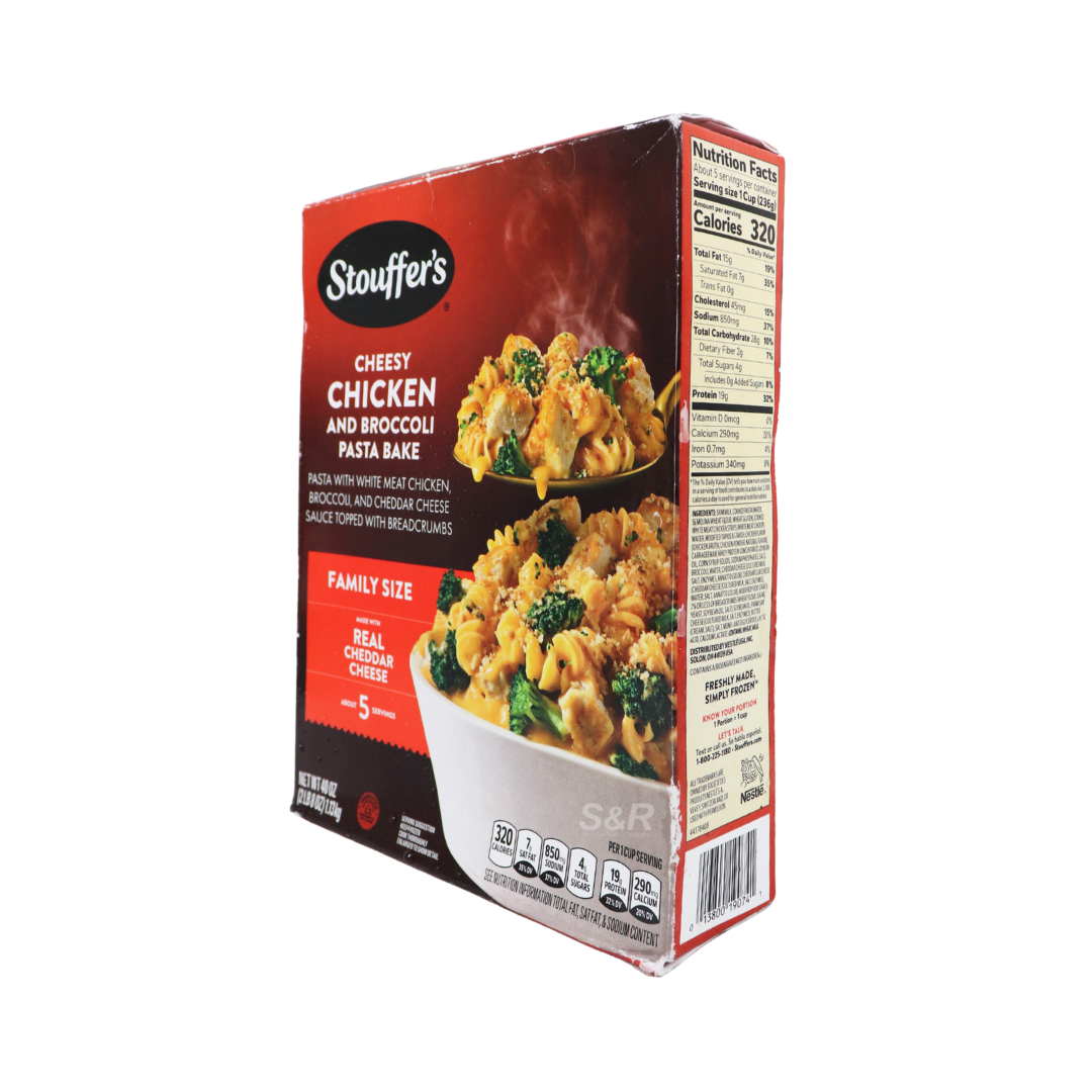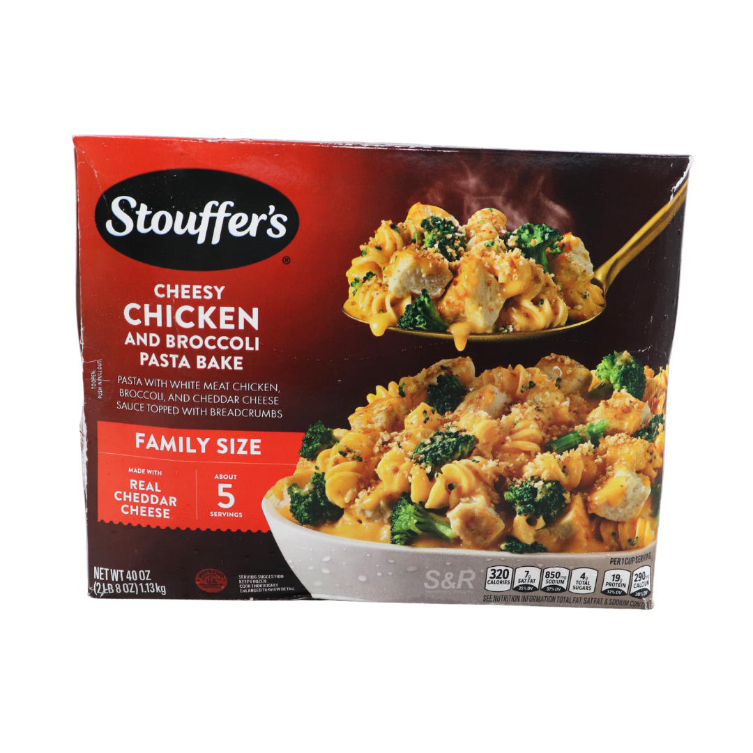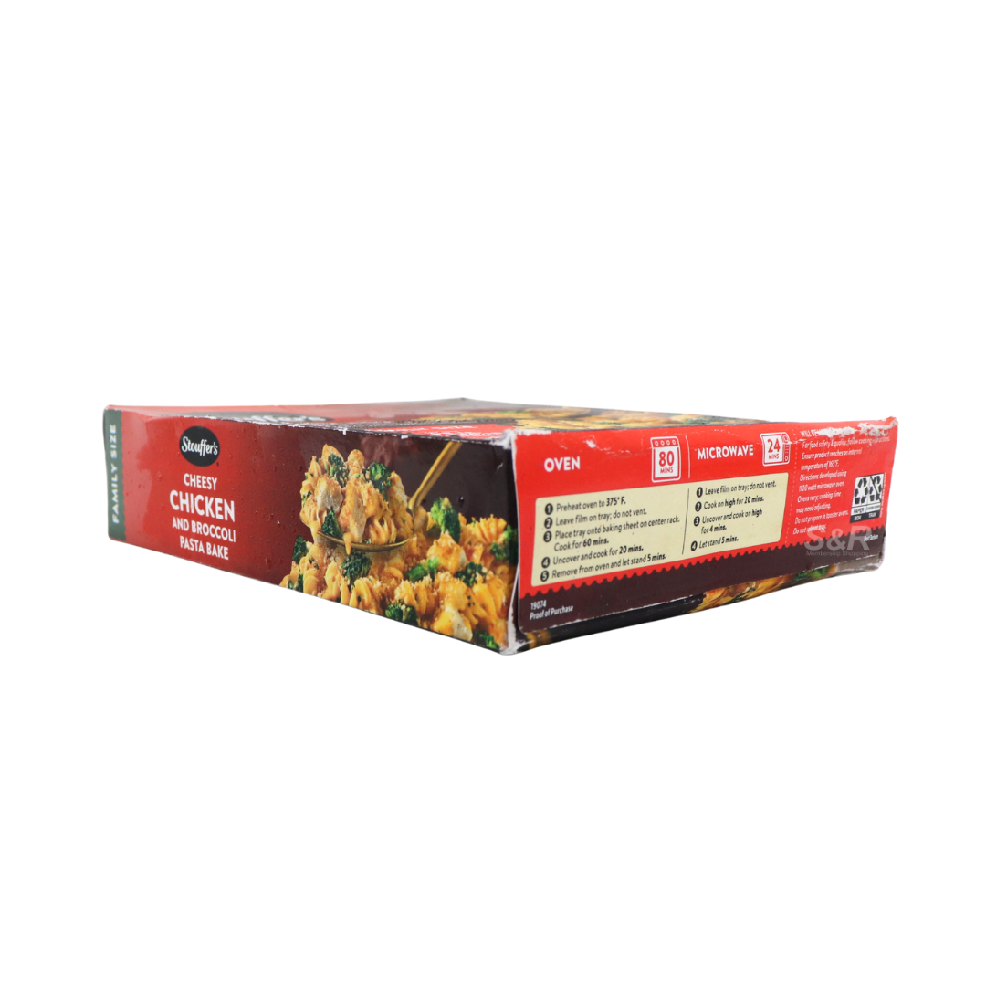 Stouffer's Cheesy Chicken & Broccoli Pasta Bake combines rich and creamy pasta with tender chicken and fresh broccoli, all baked to perfection. The generous 1.13kg portion makes it perfect for family meals, providing a quick and comforting dinner option. Made with quality ingredients, this dish ensures a delicious and satisfying experience for everyone.