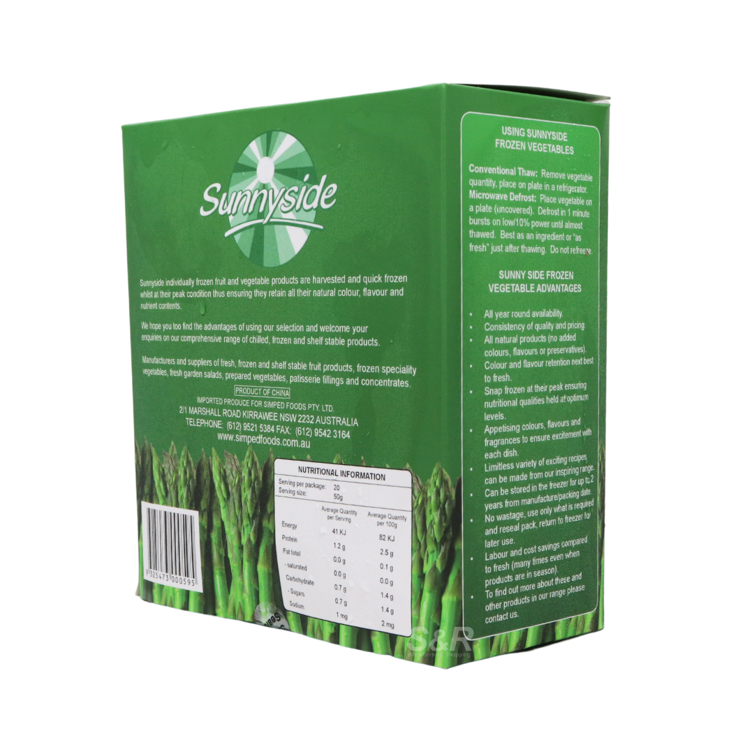 Sunnyside Premium Asparagus Spears are fresh, tender, and ideal for steaming, grilling, or stir-frying. Their crisp texture and sweet flavor make them a versatile vegetable for everyday meals or gourmet dishes.