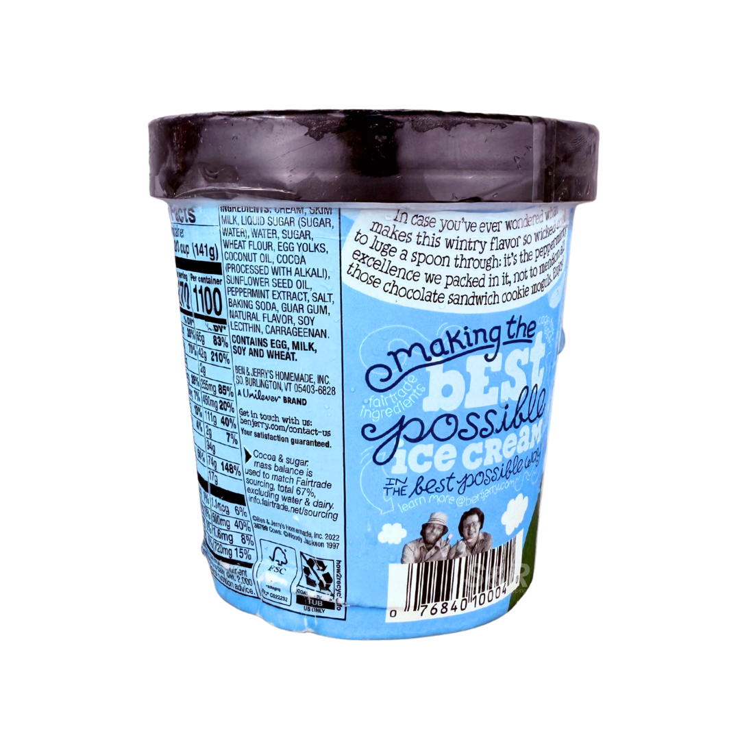 Ben & Jerry’s Mint Chocolate Cookie Ice Cream delivers the cool, creamy taste of mint with the crunch of chocolate cookies in every scoop. Made with Fairtrade-certified cocoa and non-GMO ingredients, it offers the perfect balance of freshness and indulgence. Ideal for dessert time or late-night cravings, this fan-favorite flavor satisfies sweet tooths with every spoonful of Ben & Jerry’s signature creamy goodness.