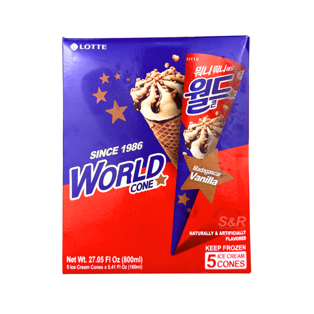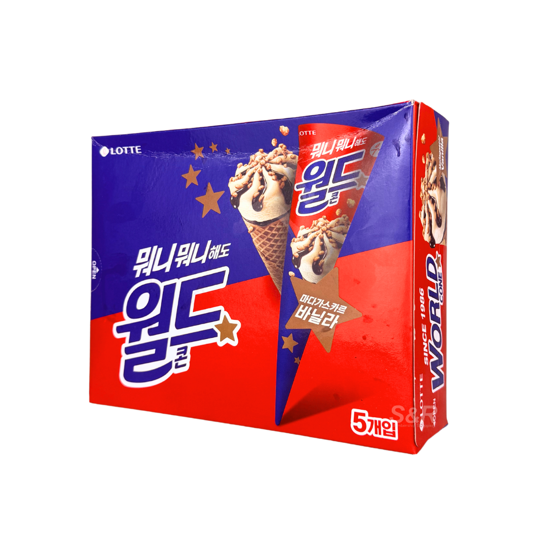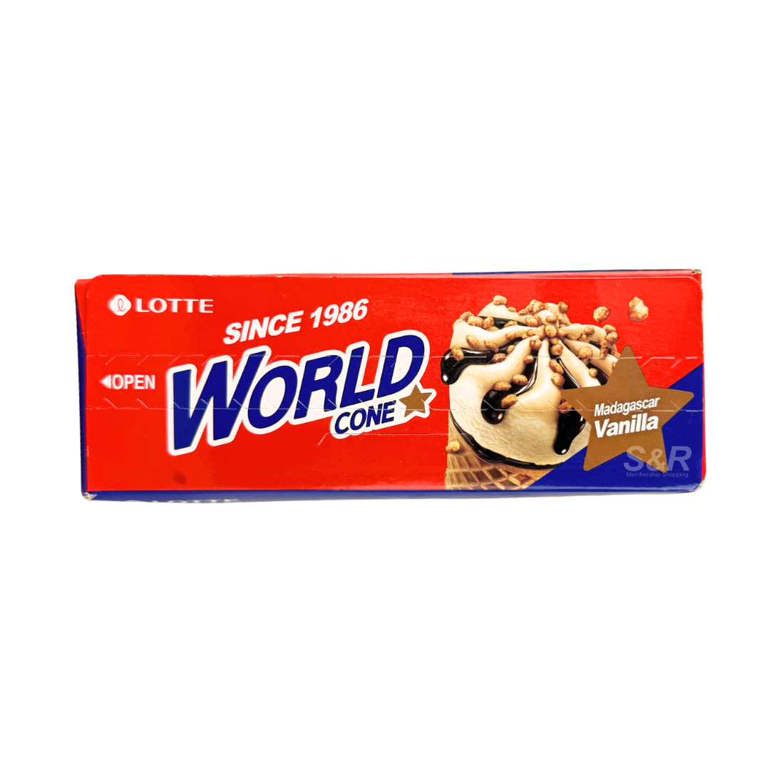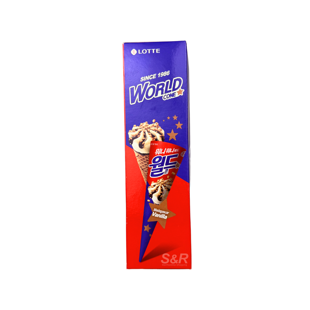 Lotte Madagascar Vanilla World Cone delivers a rich and creamy indulgence in every bite. Made with premium Madagascar vanilla, each cone offers a velvety ice cream experience balanced by a crisp wafer shell and chocolate tip. Ideal for sharing or satisfying your sweet cravings, it’s a delightful frozen treat for any time of the day. Enjoy the signature Lotte quality that brings happiness in every scoop and crunch.