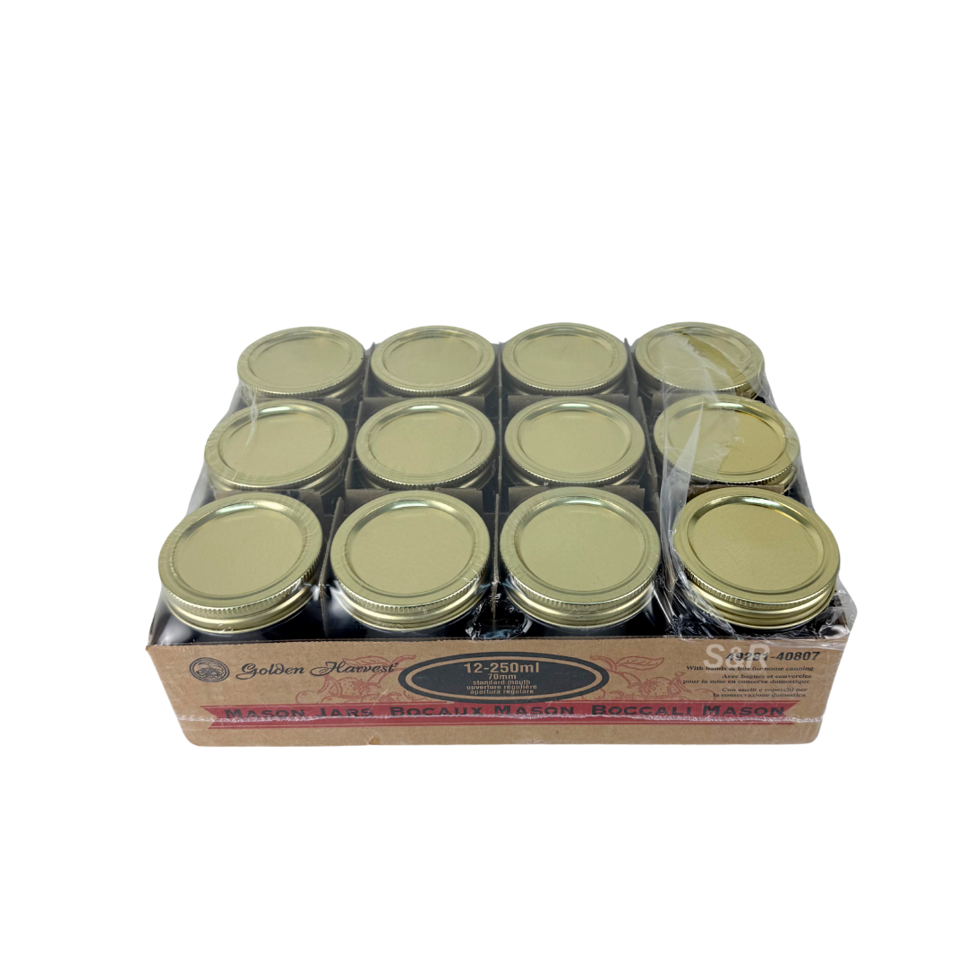The Golden Harvest Mason Jar 12-piece set is a practical and versatile choice for storage and preservation. Made with durable glass and fitted with airtight lids, these jars are perfect for canning fruits, sauces, or dry goods. Their transparent body makes it easy to identify contents, while their reusable and dishwasher-safe design ensures long-term convenience. Great for both kitchen use and crafts, this set is a multipurpose essential.