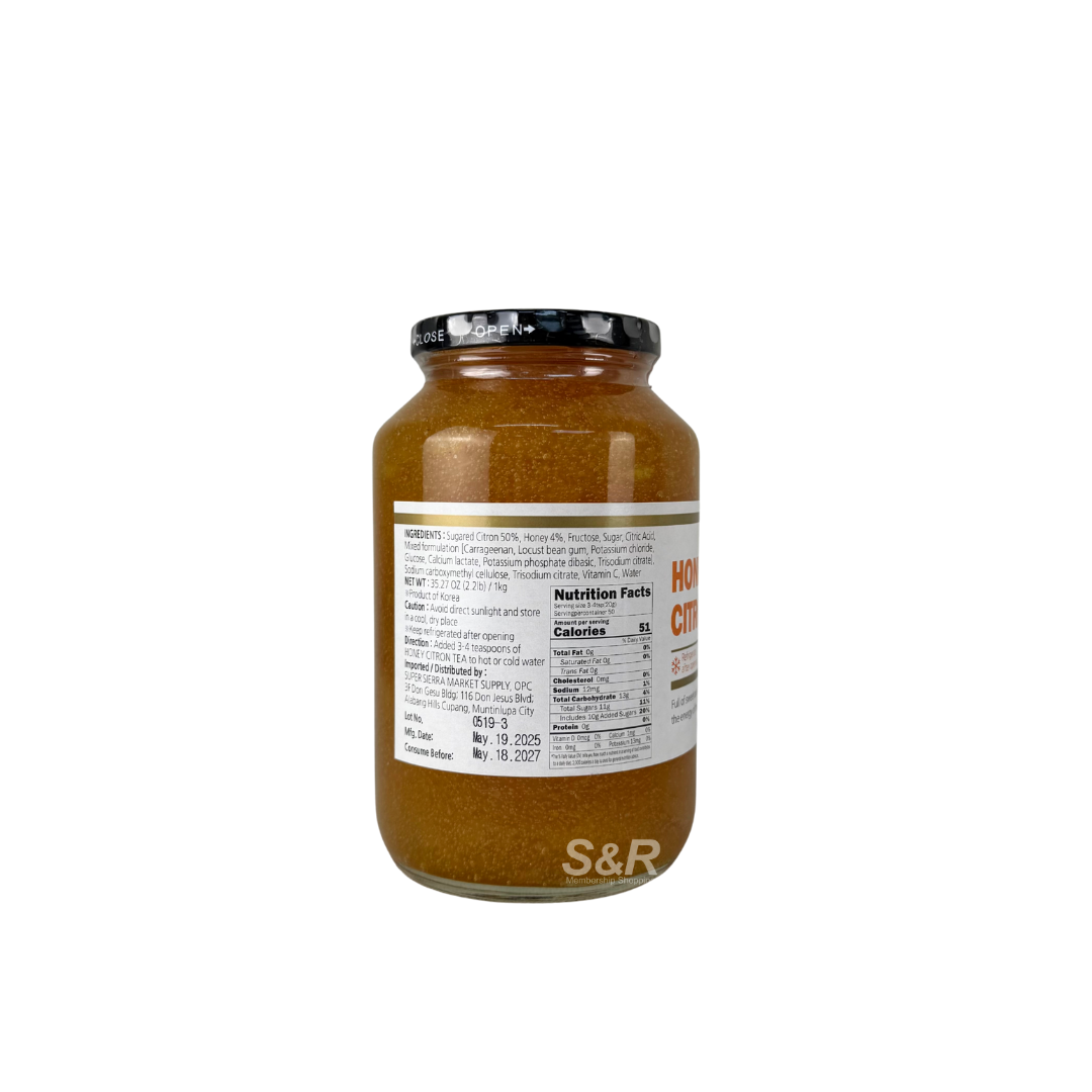 Dooraeone Honey Citron Tea is a traditional Korean delicacy that combines honey and citron for a naturally sweet, tangy flavor. Rich in vitamin C, it’s enjoyed as a soothing tea or a flavorful spread for bread and desserts. Its large 1kg jar ensures long-lasting enjoyment for the whole family.