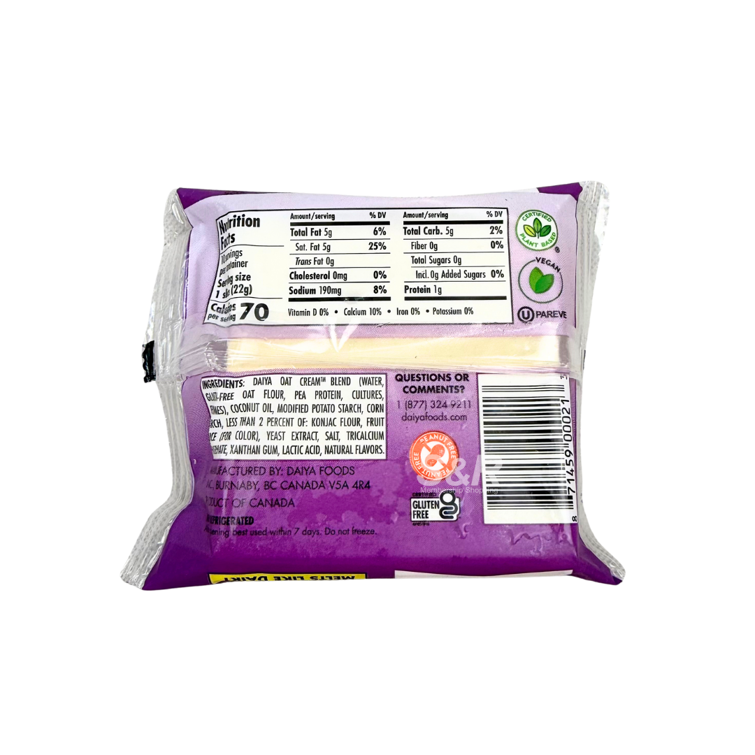 Daiya Provolone Slices 220g brings plant-based goodness to your favorite meals. Offering a mild, slightly tangy taste, it’s ideal for grilled sandwiches, burgers, or wraps. It’s free from common allergens, making it accessible to a wide audience.