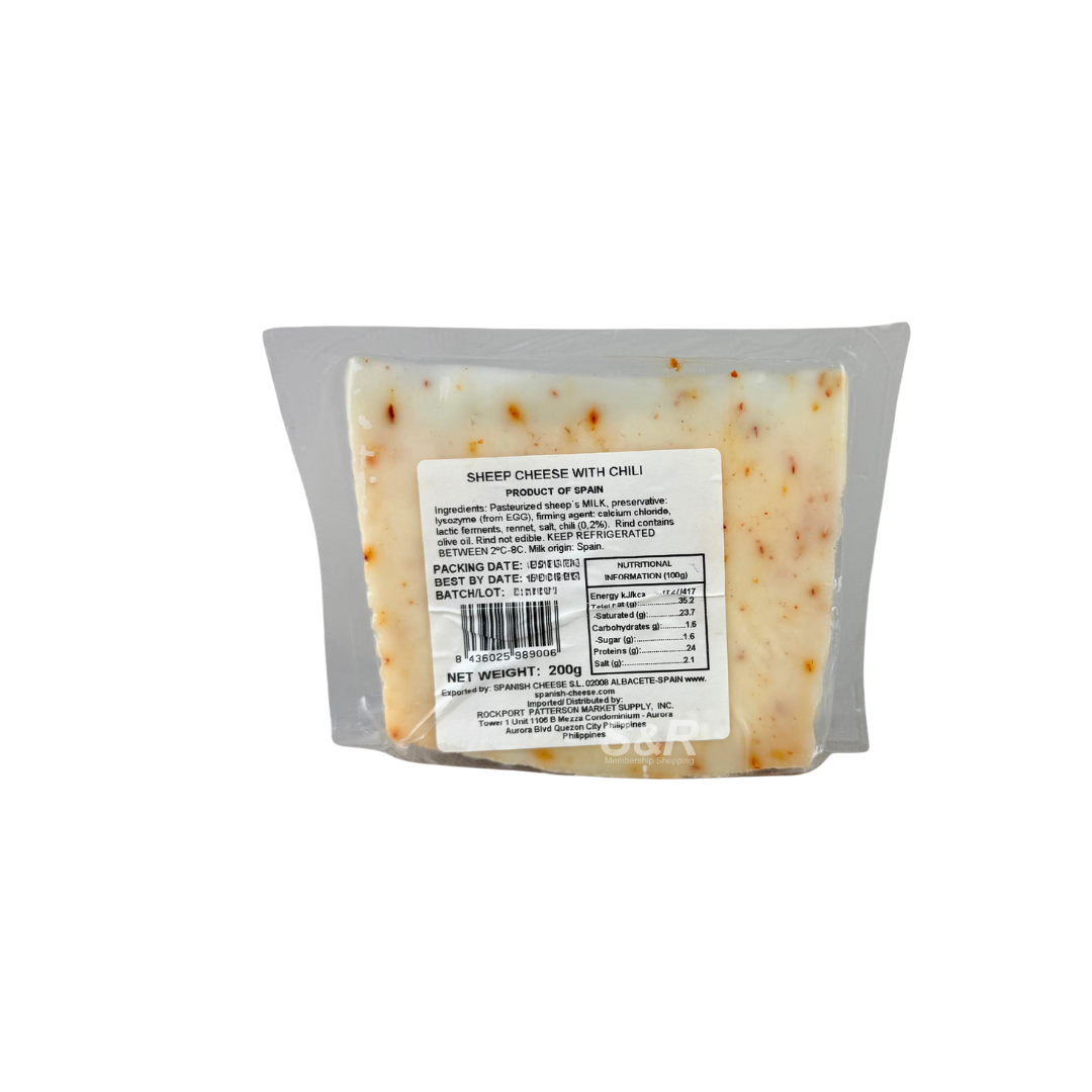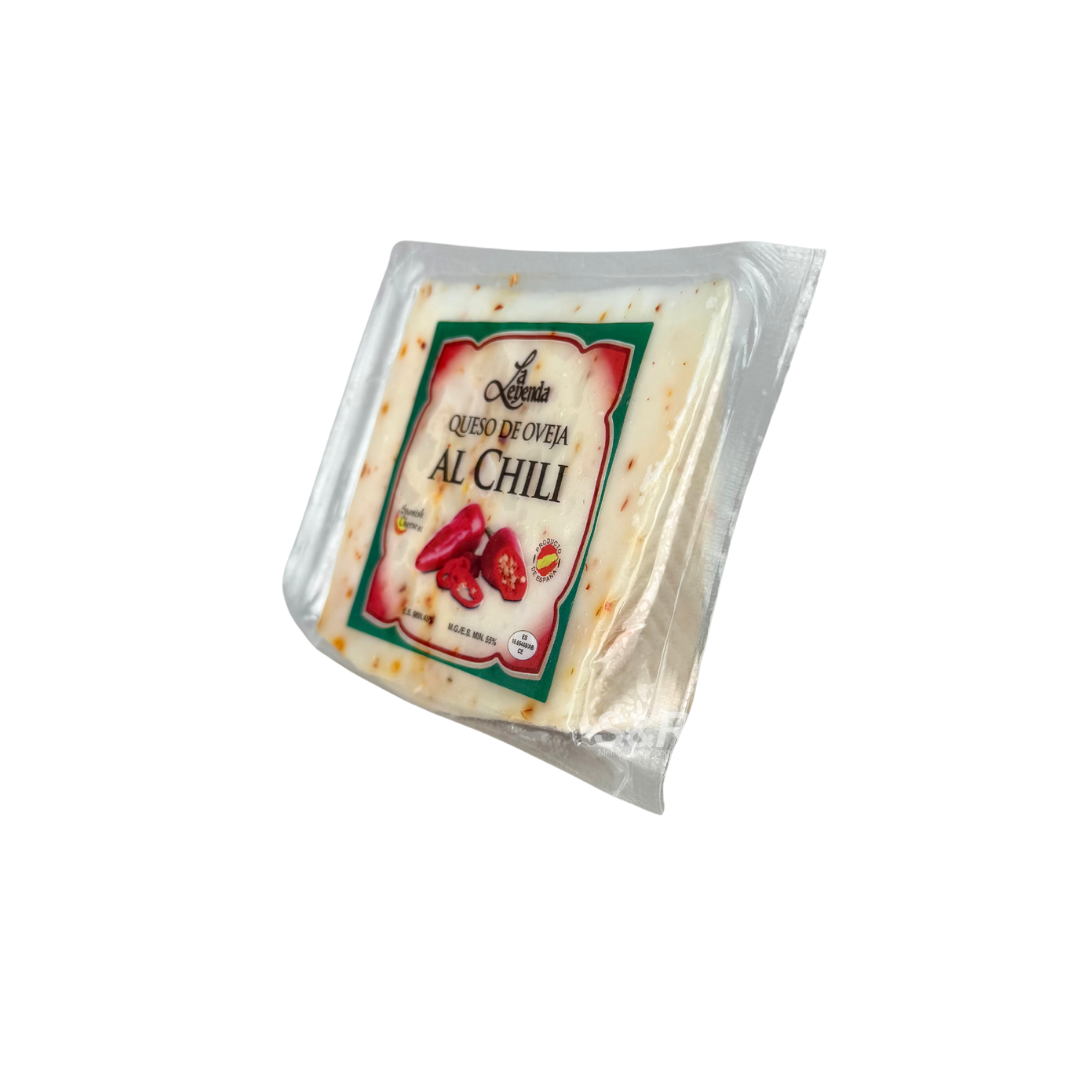 La Leyenda Sheep Cheese with Chili combines the creamy richness of sheep’s milk with a touch of spice. Perfect for cheese boards, wines, or gourmet recipes, it balances smoothness with a flavorful kick. This 200g portion offers an artisan cheese experience that elevates gatherings and enhances recipes with bold taste.