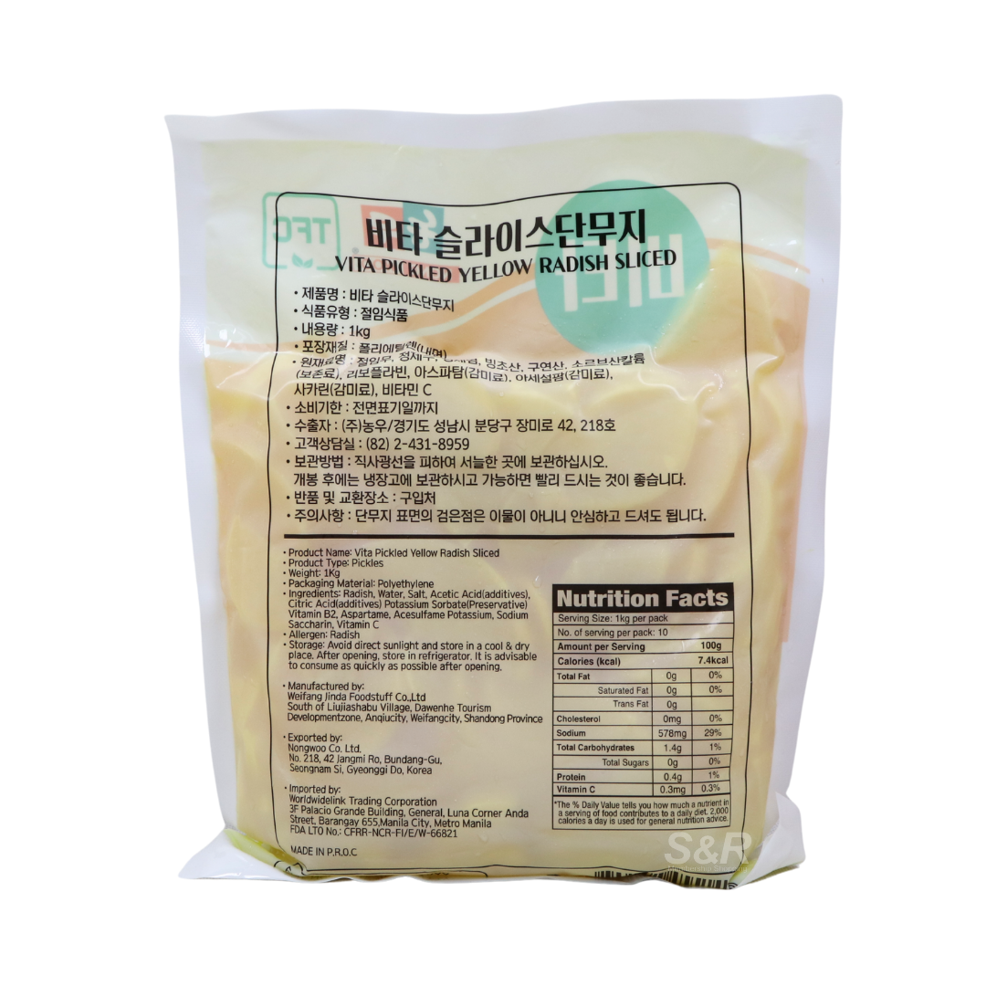 Nong Woo Pickled Yellow Radish Sliced brings crunchy, tangy, slightly sweet and salty pickled radish — a classic side or ingredient in Asian cooking. Ready‑to-use and pre-sliced, it’s perfect for adding crunch and flavor to meals like kimbap, stir‑fries, fried rice, or side dishes. Ideal for quick meal prep or adding a tangy contrast to savory dishes.