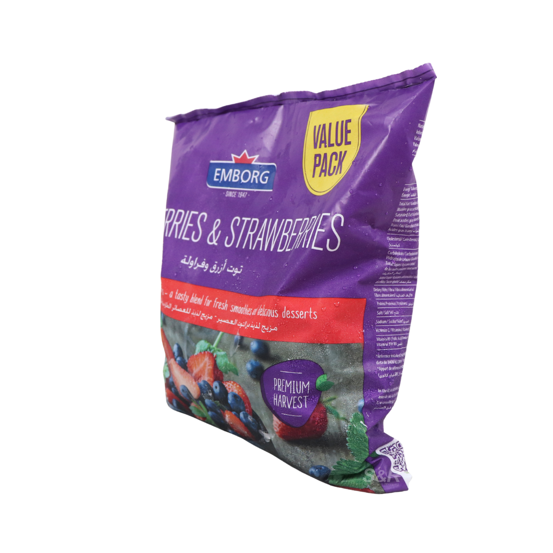 Emborg Blueberries & Strawberries Value Pack combines the best of both fruits, offering a mix of premium frozen blueberries and strawberries. Rich in vitamins and antioxidants, this mixed pack is perfect for a variety of recipes, from smoothies to baked goods, providing convenience and quality in one package.