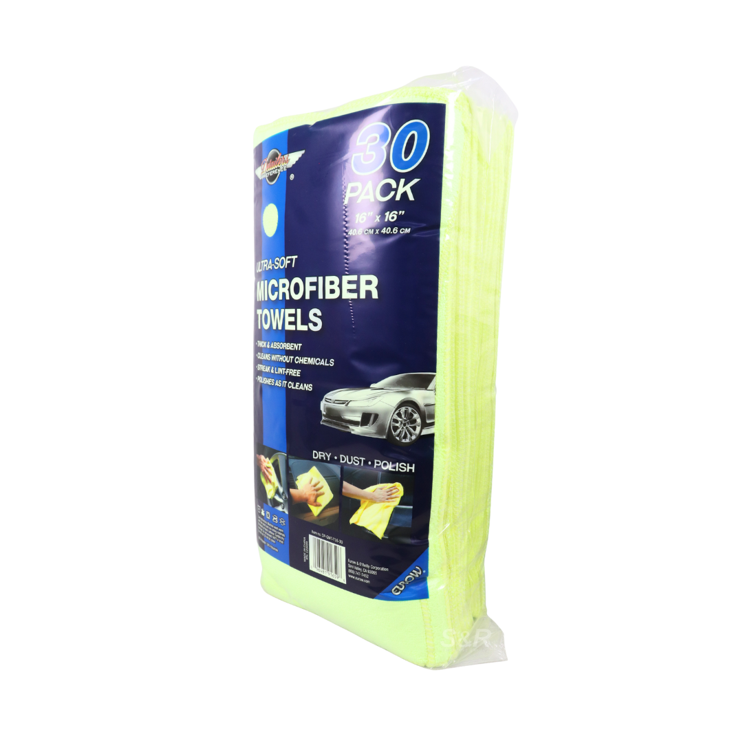 Detailers Ultra-soft Microfiber Towels are designed for gentle and effective cleaning. These 16" x 16" towels are lint-free, highly absorbent, and perfect for detailing cars, household cleaning, and more. The 30-piece pack ensures you have plenty of towels for various tasks, providing a reliable solution for maintaining a spotless finish.