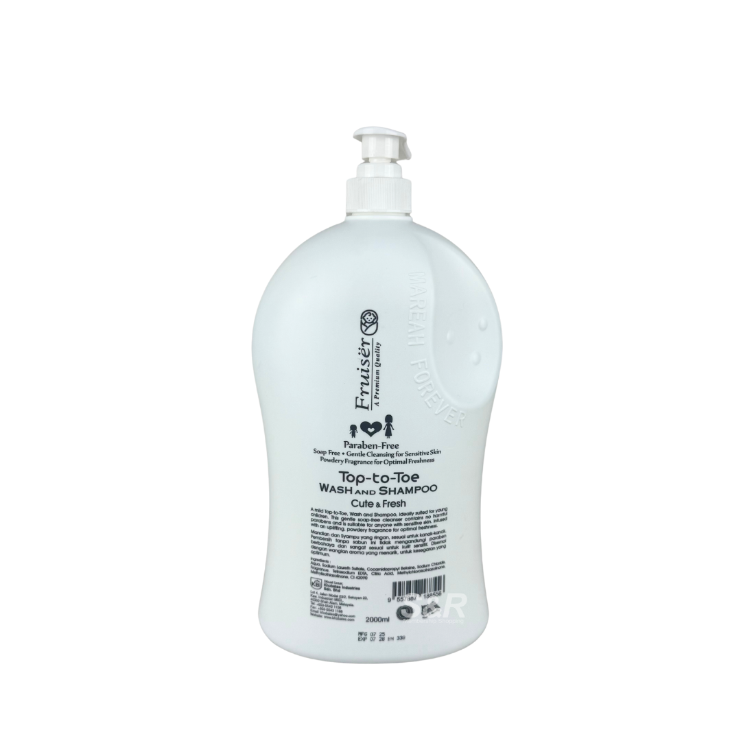 • Fruiser Cute & Fresh Body Wash & Shampoo is designed for families seeking a convenient all-in-one cleansing solution. With its gentle yet effective formula, it can be used on both hair and body, leaving a refreshing scent behind. Its playful fragrance appeals to kids, making bath time more enjoyable. The large 2L bottle ensures lasting use, making it a practical choice for households.
