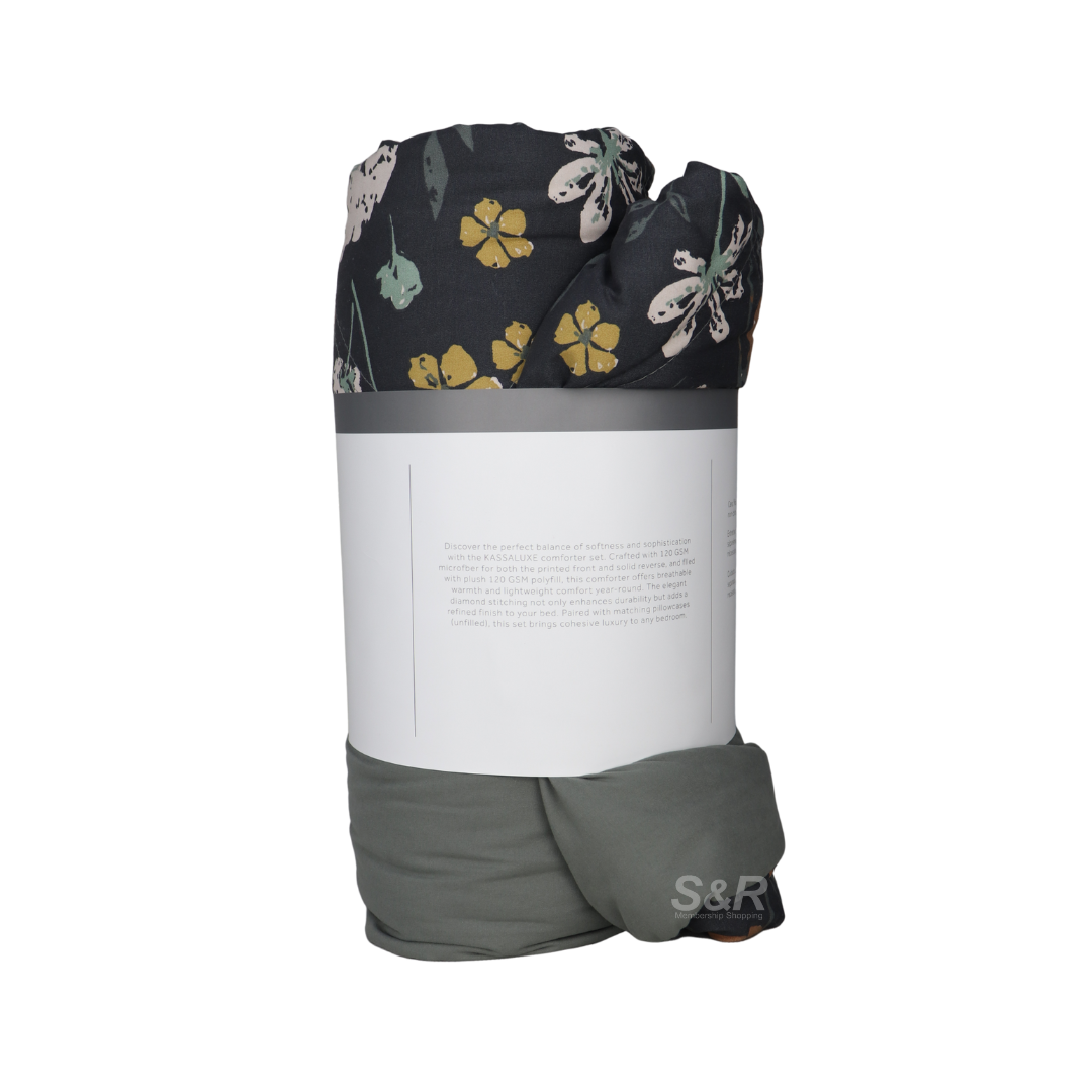 Add comfort and versatility to your bedroom with the Kassaluxe King Reversible Comforter Set. Designed with a reversible pattern, it offers two beautiful looks to suit your mood. The soft microfiber fabric and plush fill deliver warmth and breathability all year long. With its matching shams and machine-washable care, this set combines style, softness, and convenience.