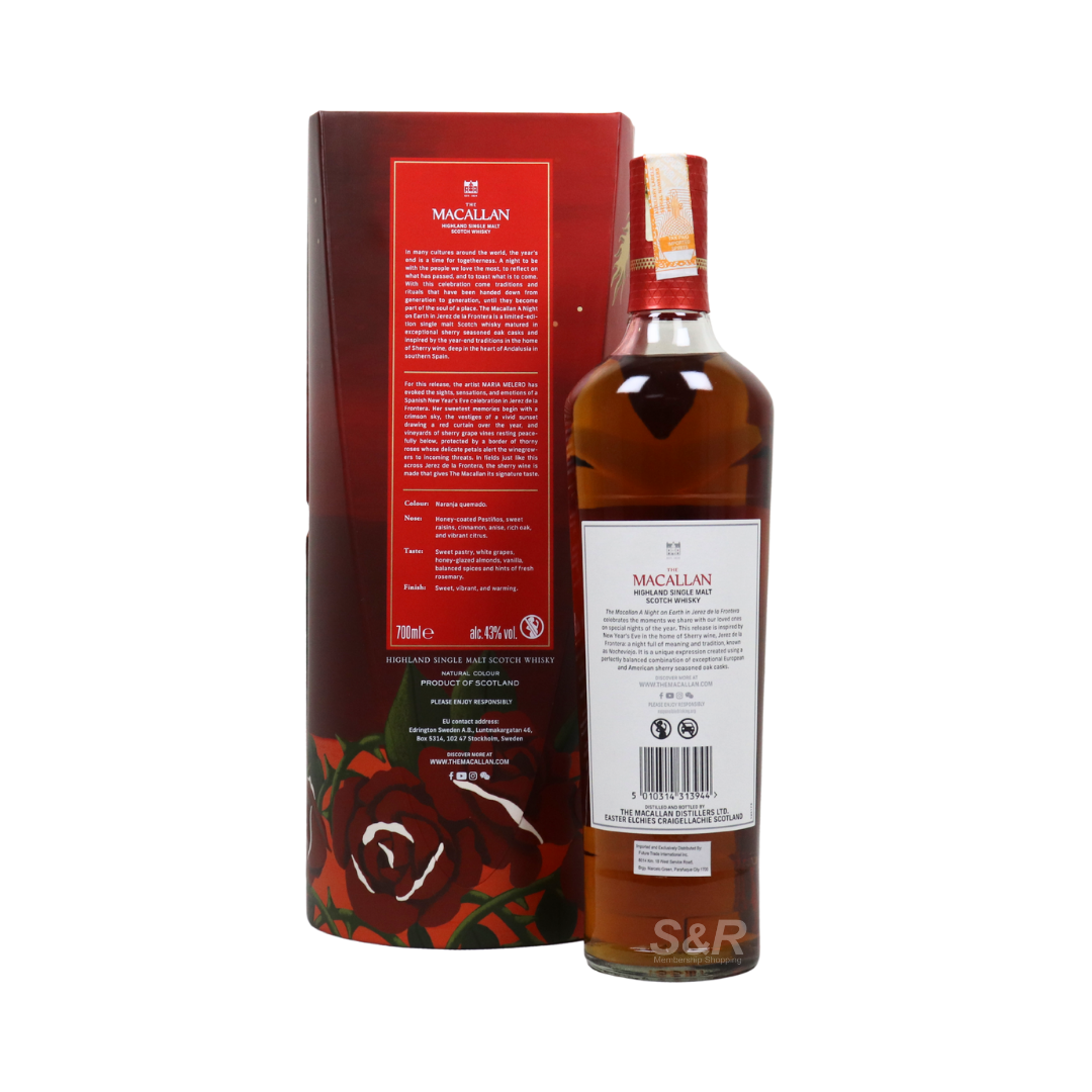 A Night on Earth in Jerez captures the warmth and festivity of Spanish celebrations, inspired by The Macallan’s partnership with renowned sherry cask producers. Its flavor profile includes notes of rich dried fruits, orange zest, caramelized nuts, and velvety sweetness influenced by Jerez’s famed sherry traditions. The packaging features artistic storytelling, making it a standout collectible. This limited edition is crafted for gifting, festive gatherings, and whisky enthusiasts who appreciate cultural heritage in each sip.