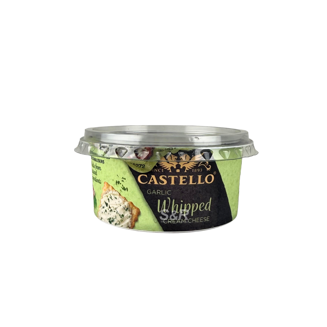• Castello Garlic Whipped Cream Cheese offers a light, airy texture infused with the robust taste of garlic. Ideal for spreading on bread, bagels, or crackers, it also works wonderfully as a dip or cooking ingredient. With its smooth consistency, it brings gourmet flair to everyday meals and snacks.
