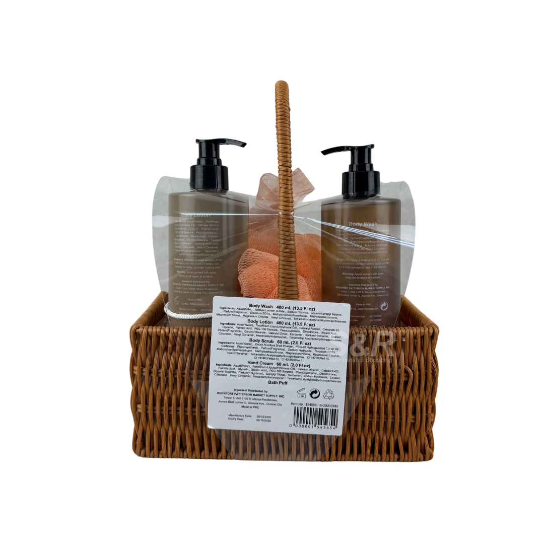 Bring a touch of nature into self-care with this bath set in a handwoven rattan caddy. Carefully curated bath essentials nestle inside a charming organizer that doubles as a décor piece. The artisanal feel of the rattan complements the indulgent scents within, making it a thoughtful gift or elegant accent for your bathroom display. Functional and beautiful, this set celebrates both nourishment and style.