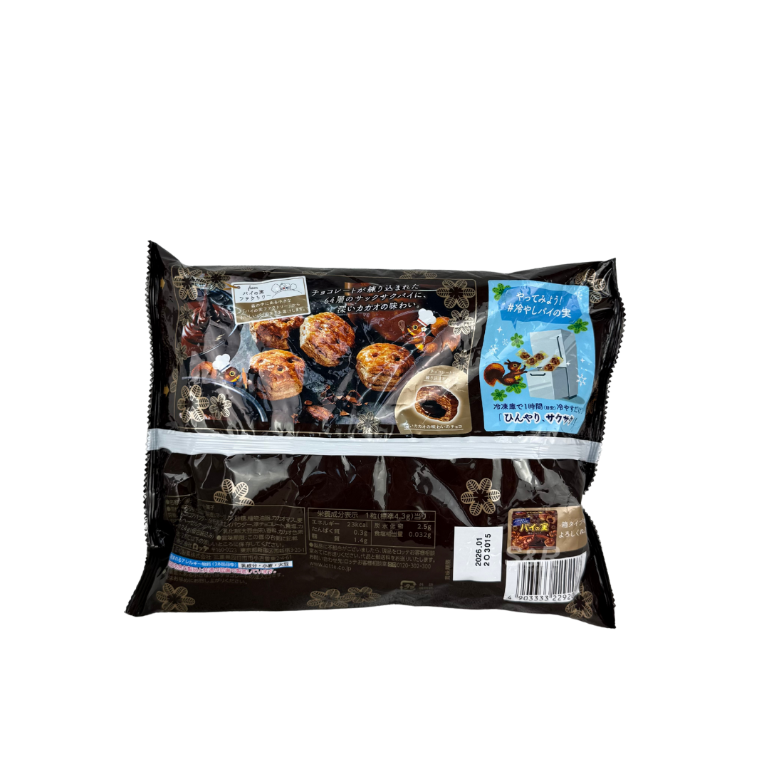 Indulge in chocolate decadence with Lotte Pie No Mi Deep Chocolate. This 124 g shared pack contains individually wrapped wafer-cake pieces layered with deep chocolate cream. The texture is a mix of crisp and soft, and the intense chocolate flavor makes it satisfying for cocoa lovers. Perfect for everyday snacking or as a treat to share with friends and family.