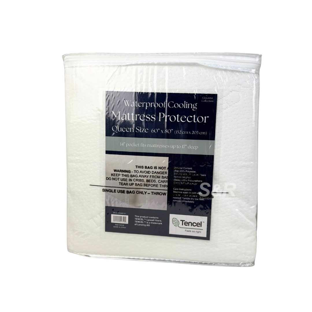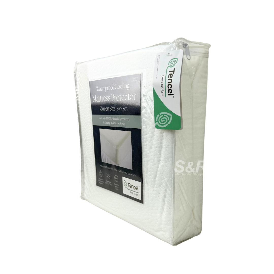The Tencel Waterproof Cooling Mattress Protector keeps your bed dry and cool. Crafted with Tencel fabric, it offers a silky smooth surface that's breathable and moisture-wicking. It protects against spills and allergens without compromising comfort. Perfectly fits queen-sized mattresses and is easy to clean in a washing machine.