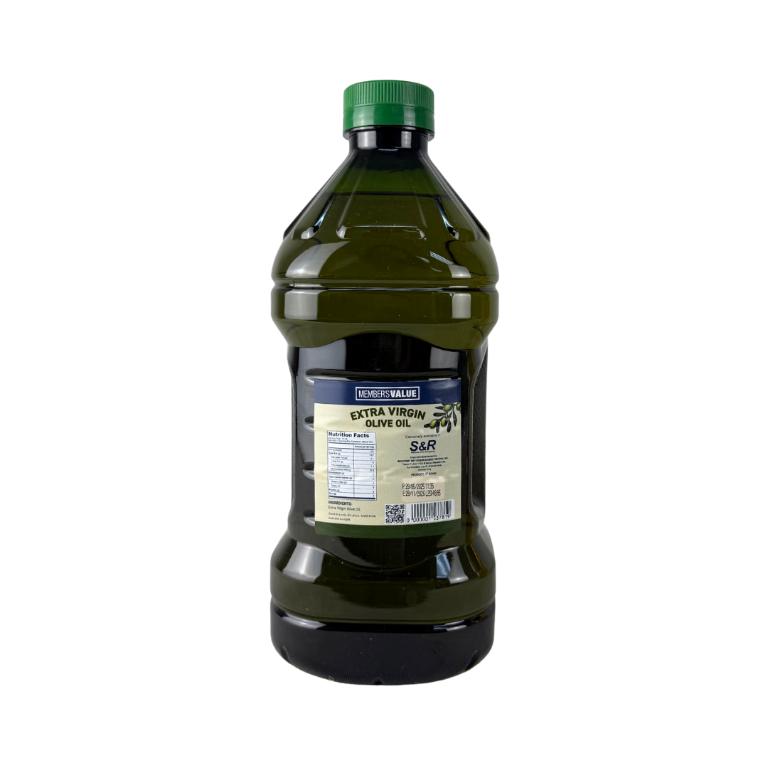 • Member’s Value Extra Virgin Olive Oil presents a full-flavor, antioxidant-rich option from first-press olives. Ideal for drizzling, salad dressings, or finishing dishes, it has stronger olive character and health benefits. The generous 2 L size provides value for users who use it often.