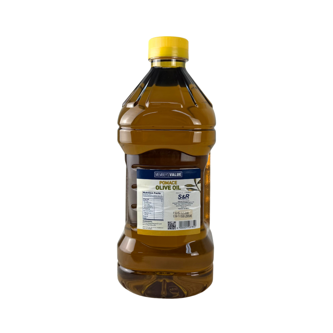 Member’s Value Pomace Olive Oil is a cost-efficient, high-capacity oil ideal for cooking needs. Extracted from olive pomace (the leftover pulp after first pressing), it performs well under high heat. Use it for frying, stir-frying, or general cooking when you need volume at a lower cost.
