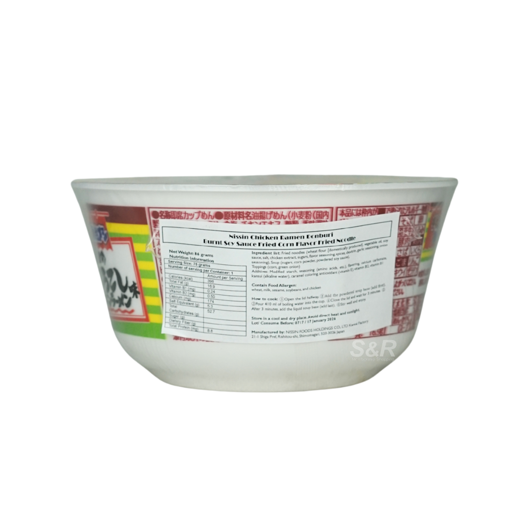 Savor the rich taste of Nissin Chicken Ramen Donburi Burnt Soy Sauce Fried Corn Noodles, a flavorful instant meal inspired by Japanese ramen culture. Each serving features firm noodles coated in savory soy sauce with bits of fried corn for texture and taste. Quick to prepare and satisfying to eat, it’s a convenient comfort meal anytime.