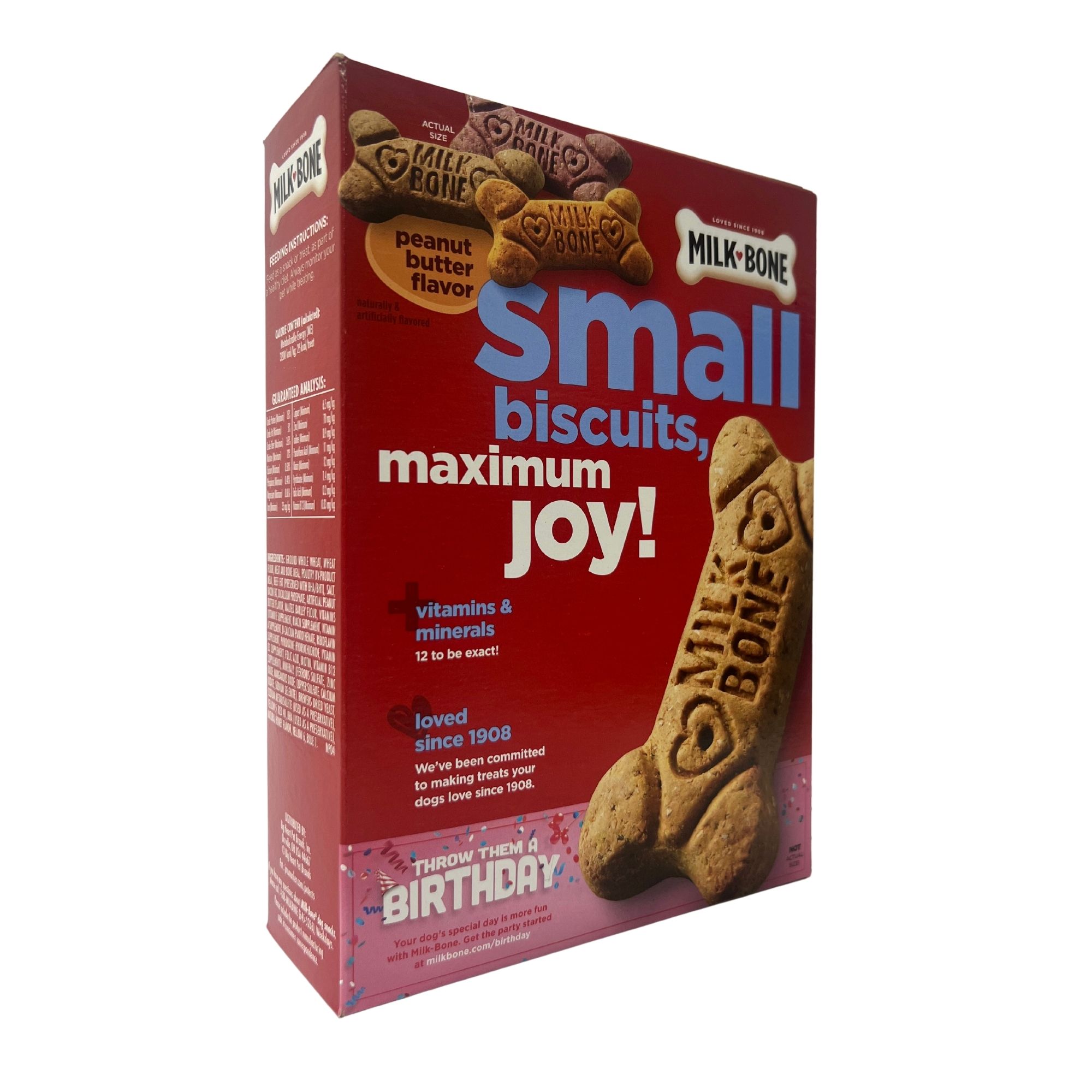 Milk-Bone Peanut Butter Flavored Dog Biscuits are crafted to delight your small breed dogs. These treats feature a crunchy texture to help clean teeth while delivering a delicious peanut butter flavor. With added vitamins and minerals, they’re perfect for everyday snacking and rewarding.