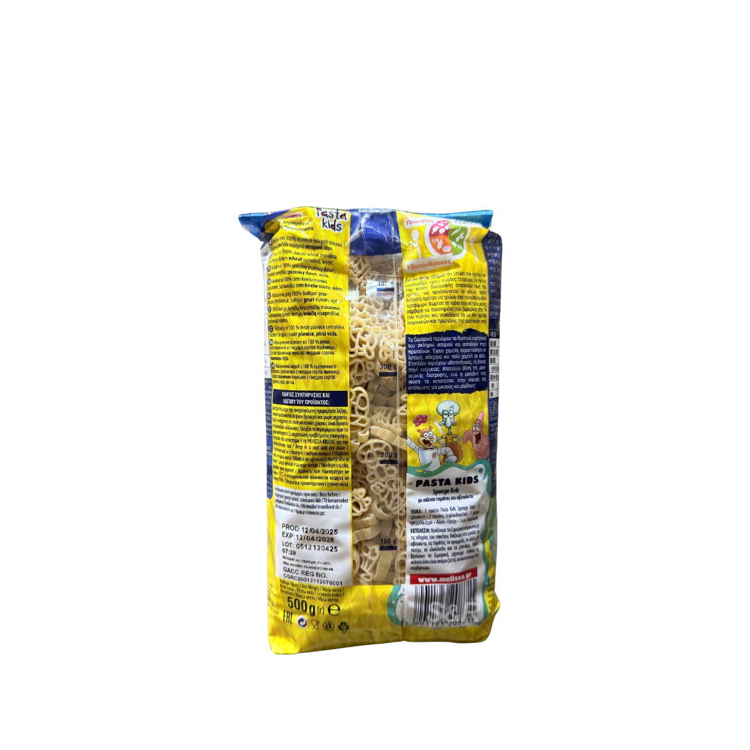 • Make mealtime more exciting with Melissa SpongeBob SquarePants Kids Pasta 500g, a fun and delicious way to serve pasta that kids adore. Crafted from premium durum wheat semolina, this pasta combines excellent taste with playful SpongeBob-themed shapes that spark imagination at the table. Perfect for soups, pasta salads, or simple saucy dishes, it turns everyday meals into adventures children look forward to. Nutritious, fun, and easy to cook, it’s a must-have for families with young ones.