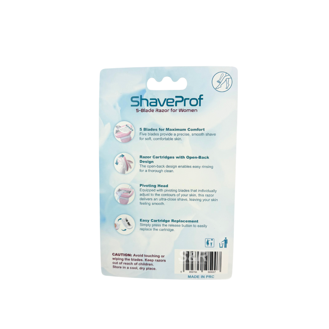 The Shave Prof 5-blade Pink Razor for Women is designed for precision and comfort. Its 5-blade system ensures a close, smooth shave with fewer strokes, reducing irritation. With an ergonomic handle for better grip, it provides control and ease during shaving. The stylish pink design adds a feminine touch while delivering professional-quality results. Suitable for everyday grooming, it offers both performance and style in one razor.
