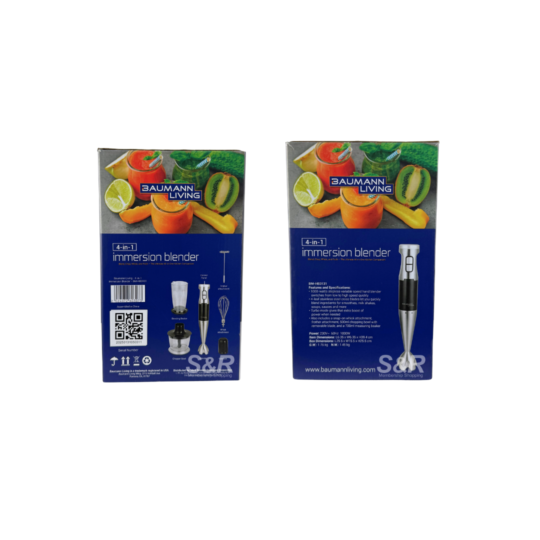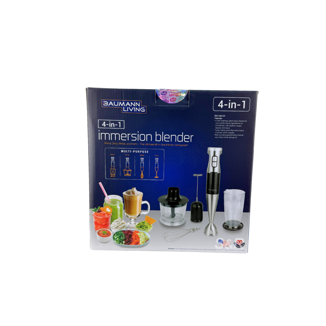 The Baumann Living 4-in-1 Immersion Blender is a versatile kitchen tool that simplifies meal preparation. With multiple attachments, it can blend, chop, whisk, and froth, making it ideal for soups, sauces, smoothies, and more. The stainless steel blades ensure efficient blending, while variable speed control allows precision. Compact yet powerful, it’s easy to store and clean, making it a must-have appliance for every kitchen.