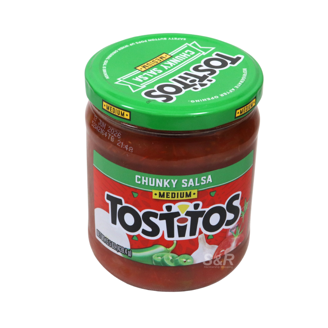 Tostitos Medium Chunky Salsa delivers a balanced blend of tomatoes, spices, and vegetables with a satisfying chunky texture. The medium heat level provides just the right amount of kick without overpowering the flavor. Perfect for pairing with tortilla chips, tacos, or nachos, it adds bold taste to snacks and meals. Ready to serve straight from the jar, this salsa is a convenient choice for gatherings or everyday enjoyment.