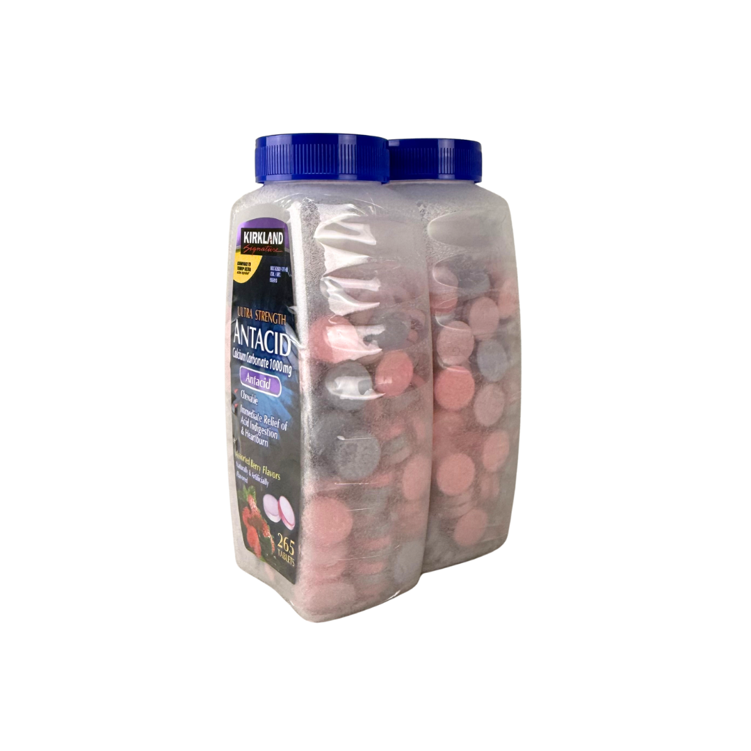 Kirkland Signature Antacid Chewables provide fast, effective relief from heartburn, sour stomach, and acid indigestion. Each chewable tablet contains calcium carbonate that neutralizes excess stomach acid. With pleasant fruit flavors and no added sugar, it’s both effective and enjoyable to take. Conveniently packaged in two large bottles for extended use.
