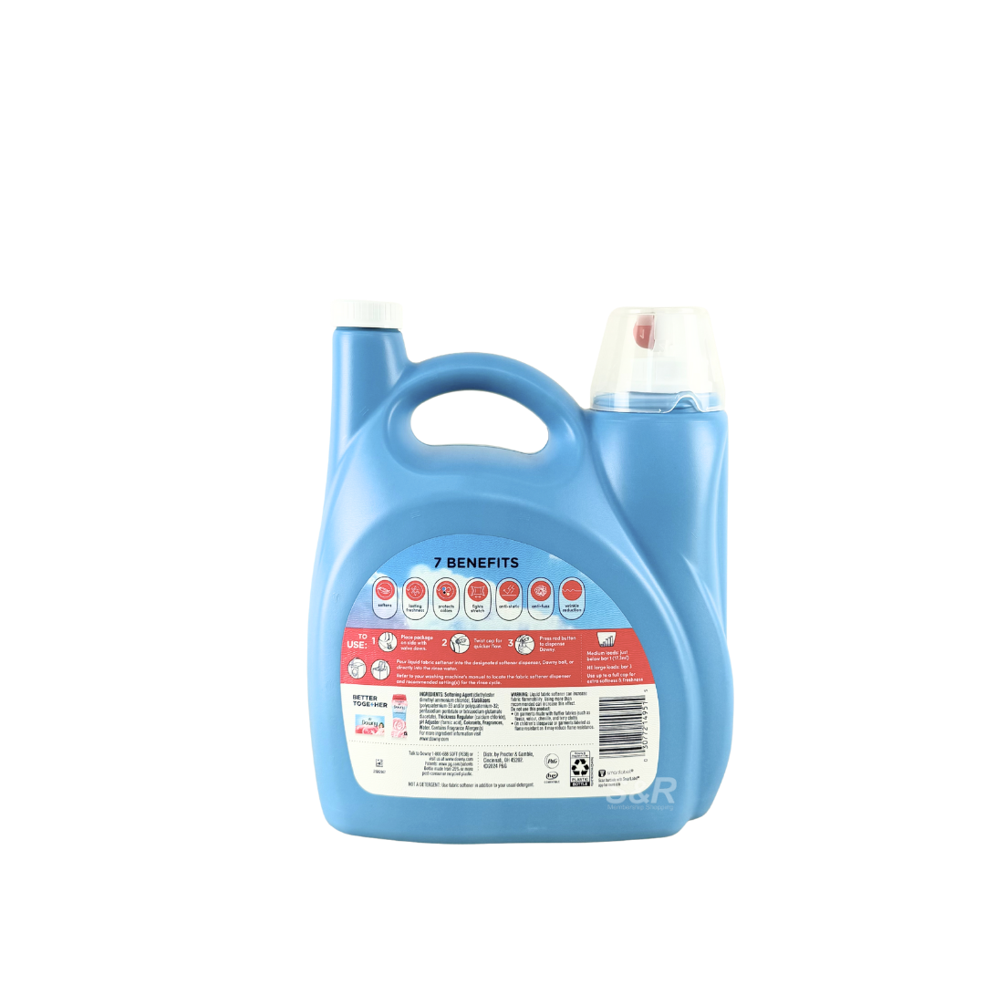 Benefits: Softens fabrics, reduces wrinkles and static, adds long-lasting freshness
