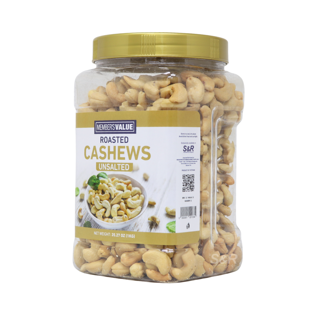 • Member’s Value Unsalted Roasted Cashews offer premium-quality whole cashews roasted to bring out their natural nutty flavor without added salt. This makes them ideal for health-conscious snacking, baking, cooking, or adding to salads and stir-fries. Their crunchy texture and rich taste make them versatile for both sweet and savory recipes. Packed in a generous 1kg size, they are perfect for households or bulk use while maintaining quality and freshness.