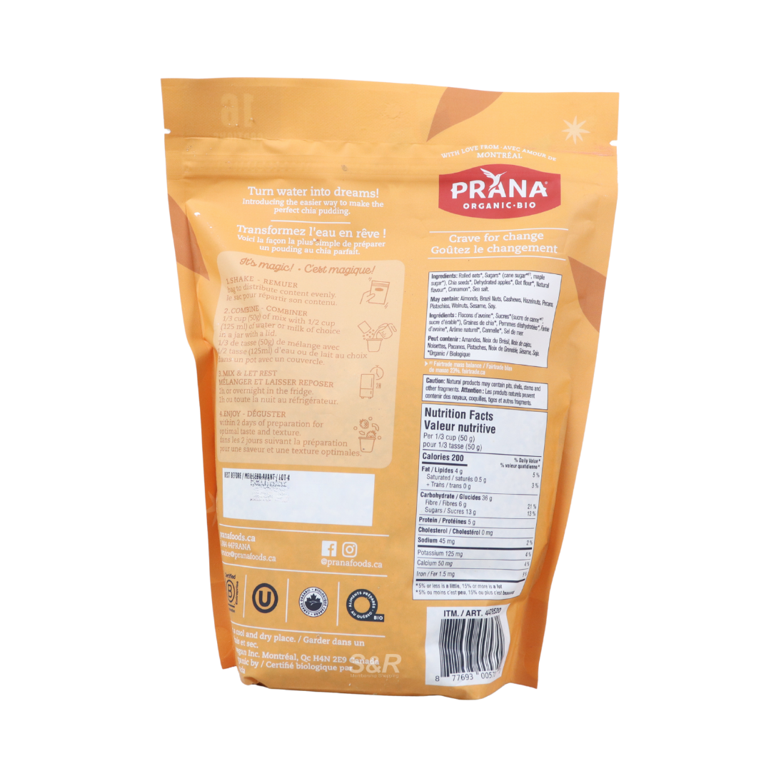 Prana Overnight Chia with Oats Apple Crumble is a convenient breakfast blend made with chia seeds and oats. Simply soak overnight for a nutritious and flavorful morning meal.